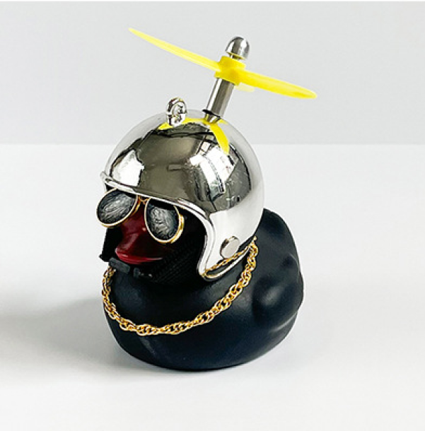 Уточка в шлеме, аксессуар в машину, черная с серебристым шлемом интересное: