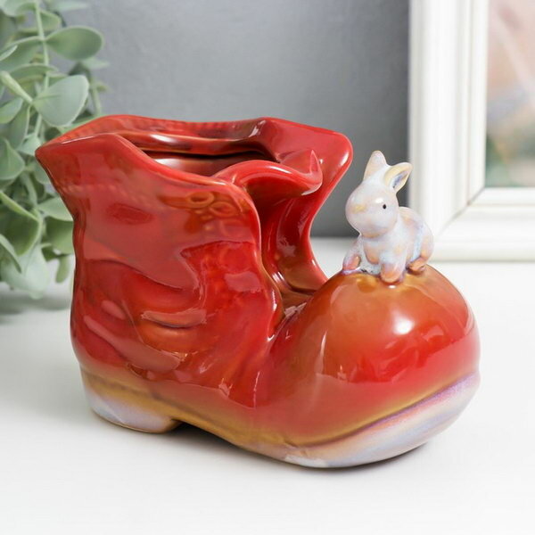 Купить Сувенир керамика "Ботинок с зайчиком" красный 7х13,5х9,5 см