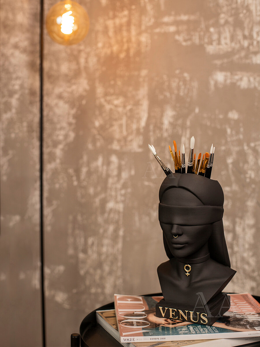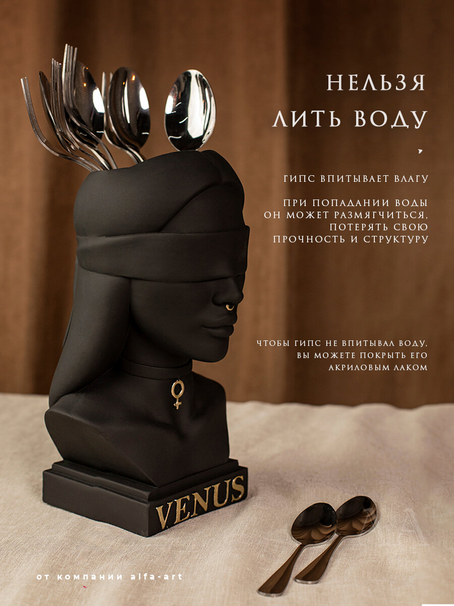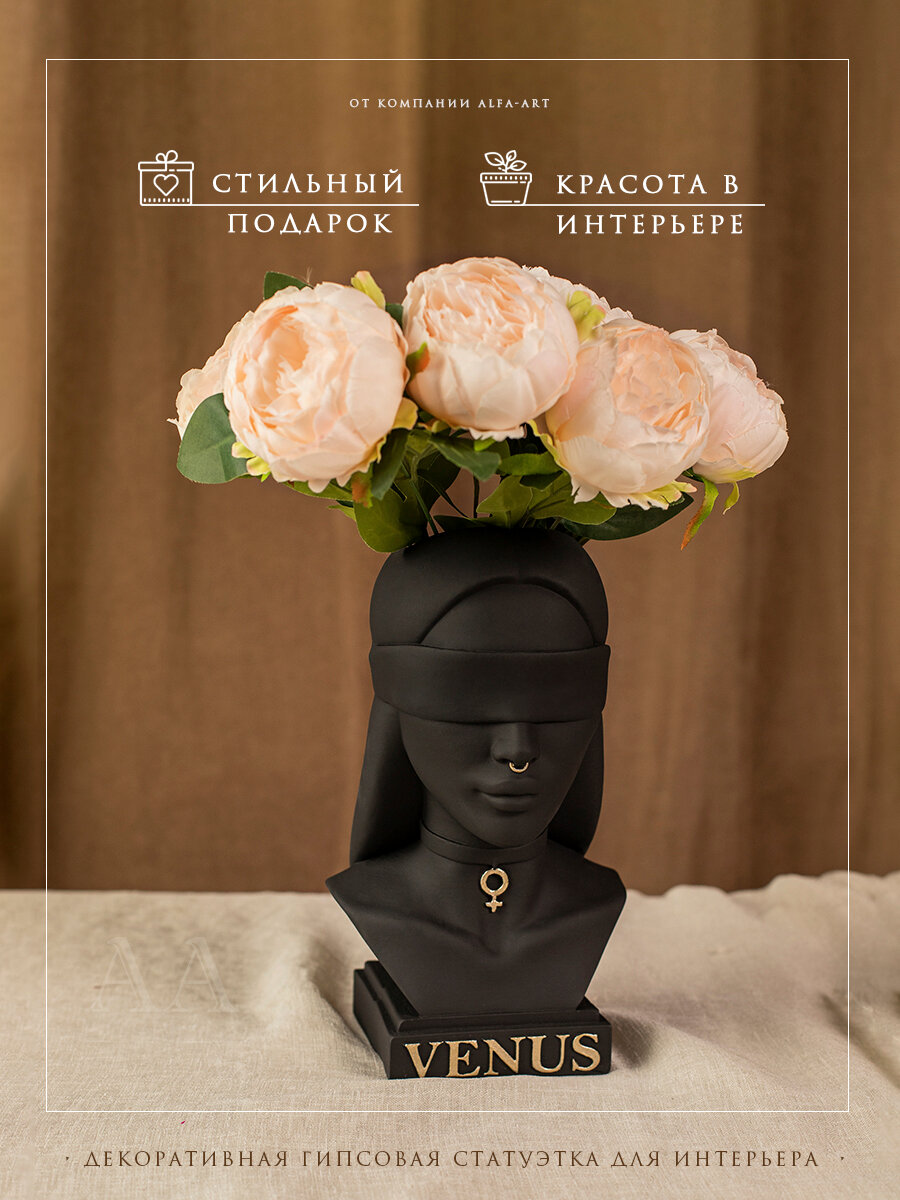 Купить Статуэтка для декора интерьера дома из гипса девушка Венера черная / Ваза лицо девочки