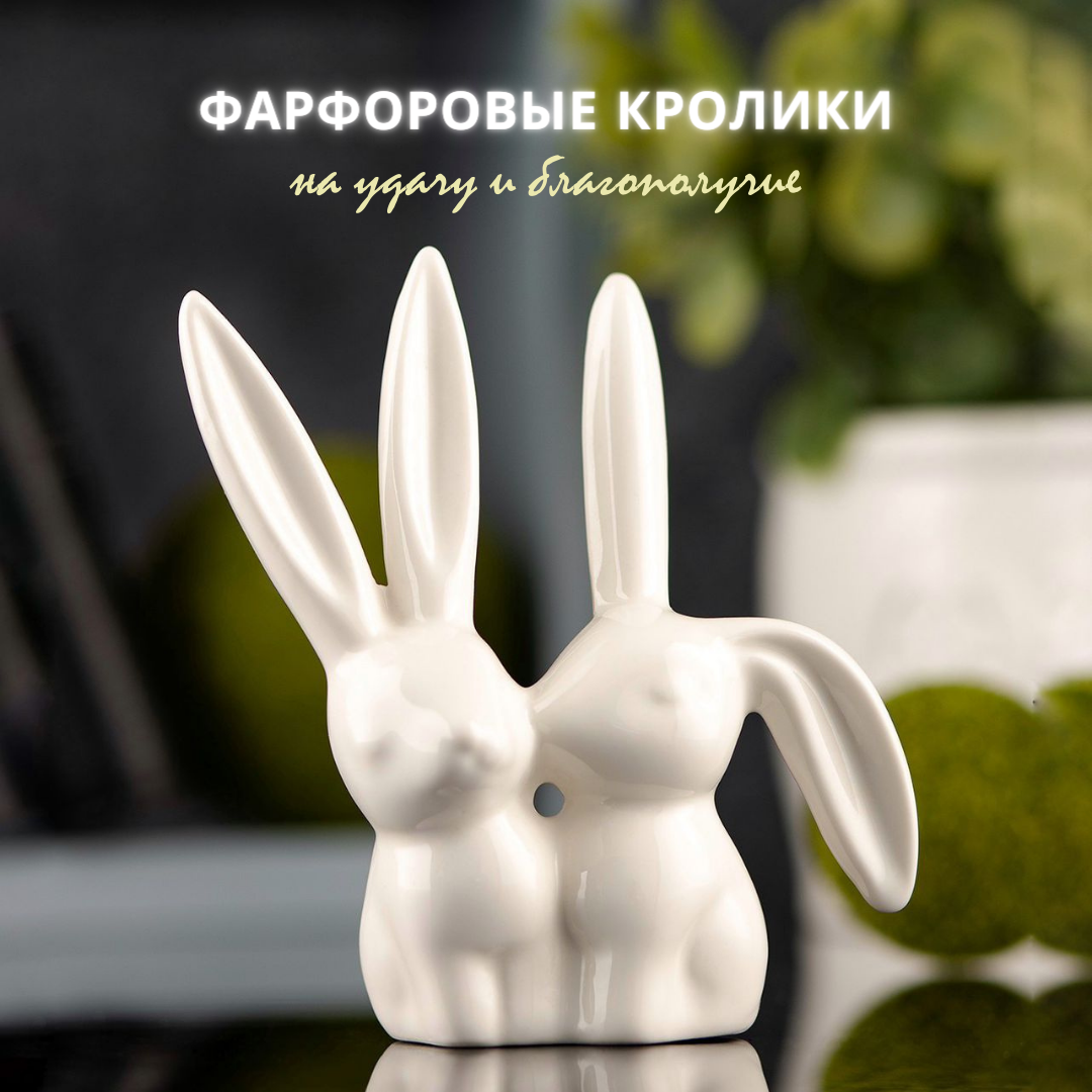 Фигурка фарфоровая сувенир "Кролик", 11 см, символ Пасха, белый интересное: