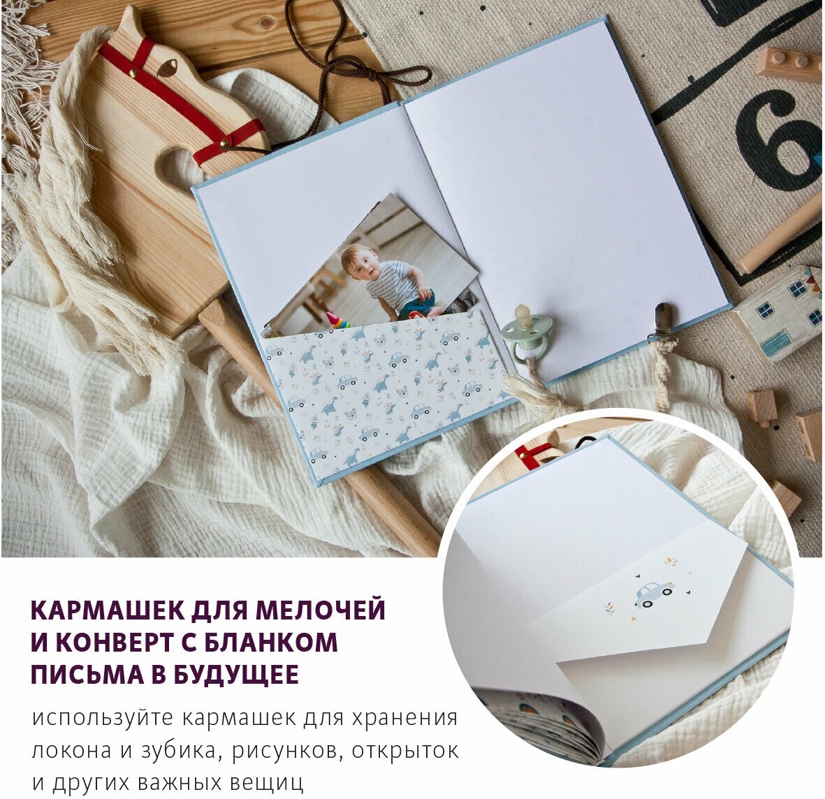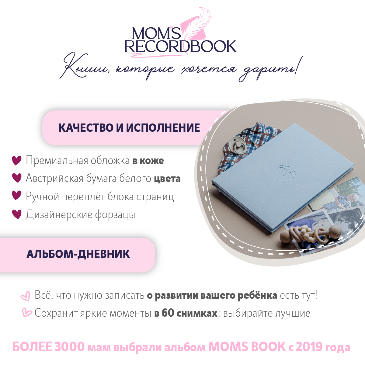 Альбом для новорожденного мальчика / нежно-голубая кожа / MOM'S RECORDBOOK интересное: