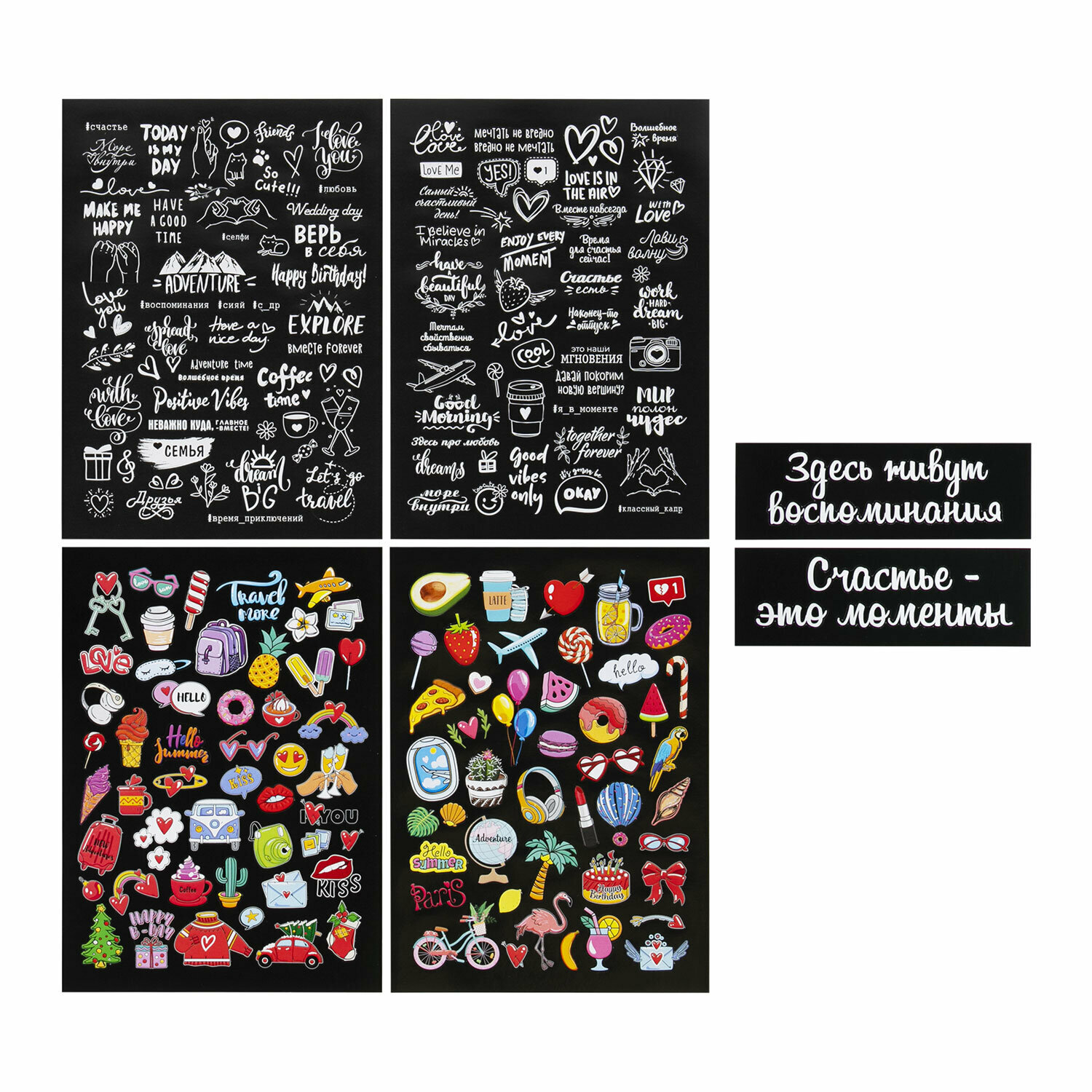 Фотоальбом детский семейный свадебный для фото с черными листами "Счастье – это моменты" 22х30 см, 24 черных листа, уголки, стикеры, ручка, клей, Brauberg, 391310