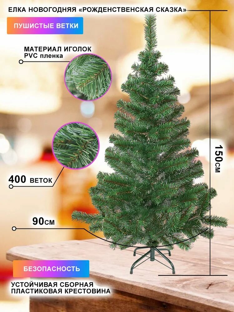 Купить Елка 150 см., новогодняя, искусственная, ПВХ иголки, огнезащитная, "Рождественская сказка"