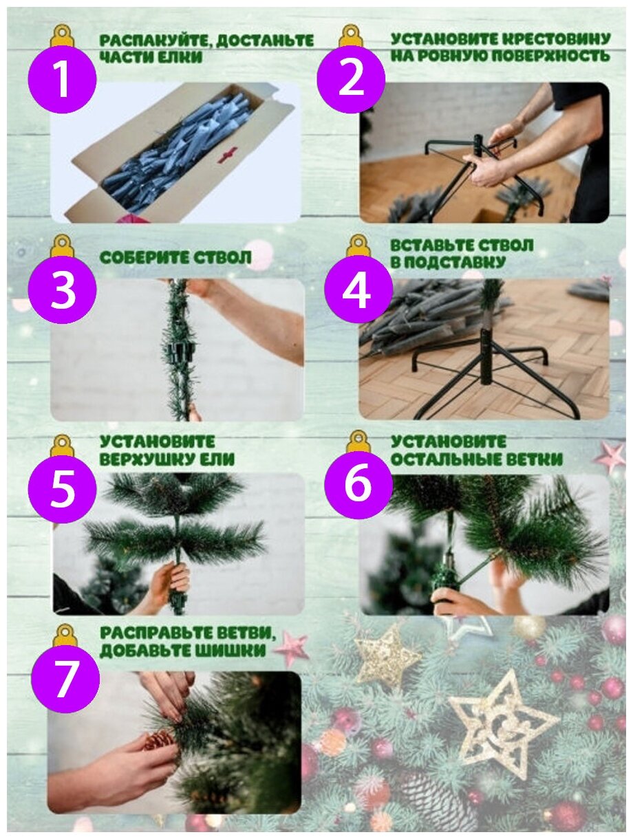 Елка искусственная из ПВХ заснеженная с натуральными шишками+гирлянда. Высота 180 см. интересное: