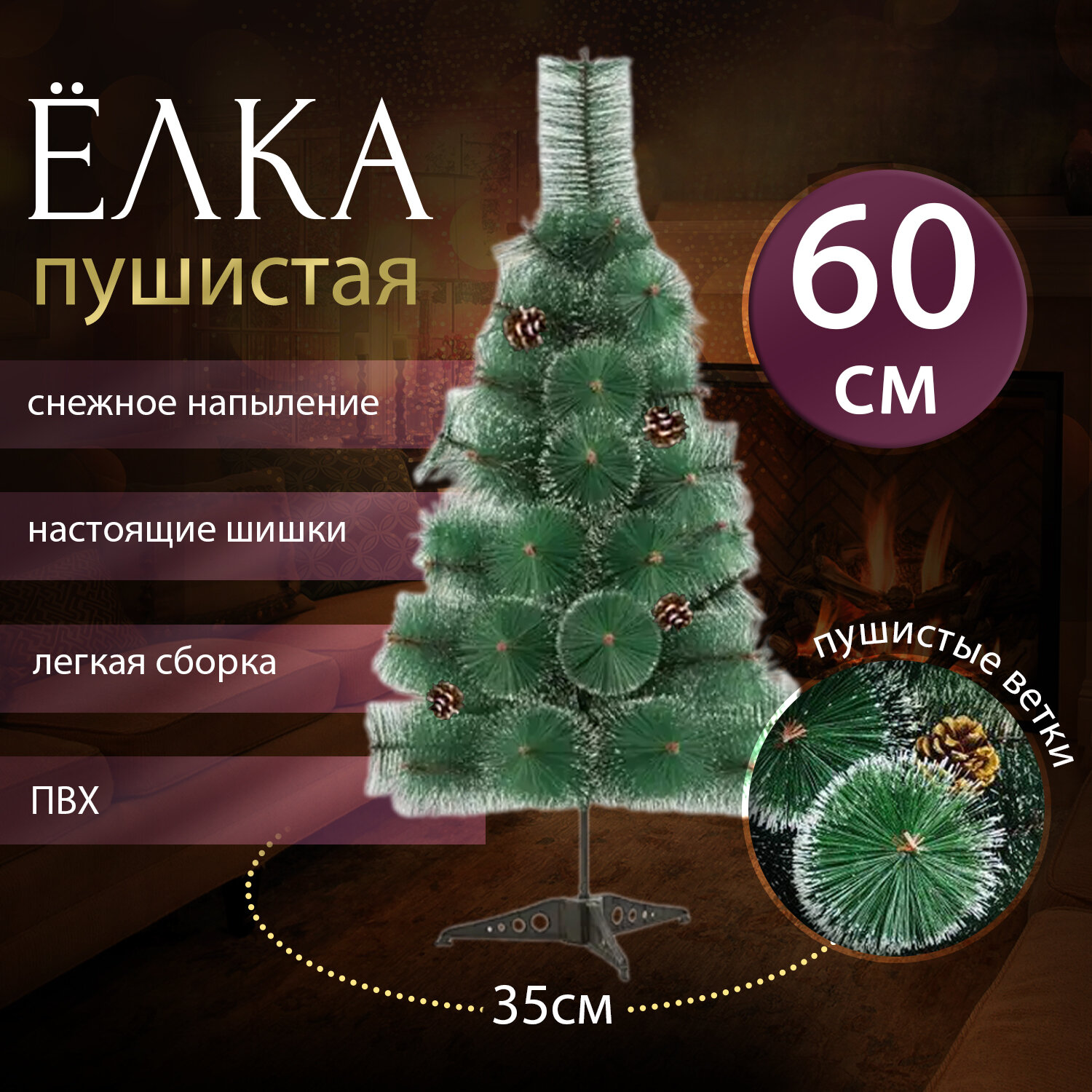 Купить Елка искусственная из ПВХ заснеженная с натуральными шишками. Высота 60 см.