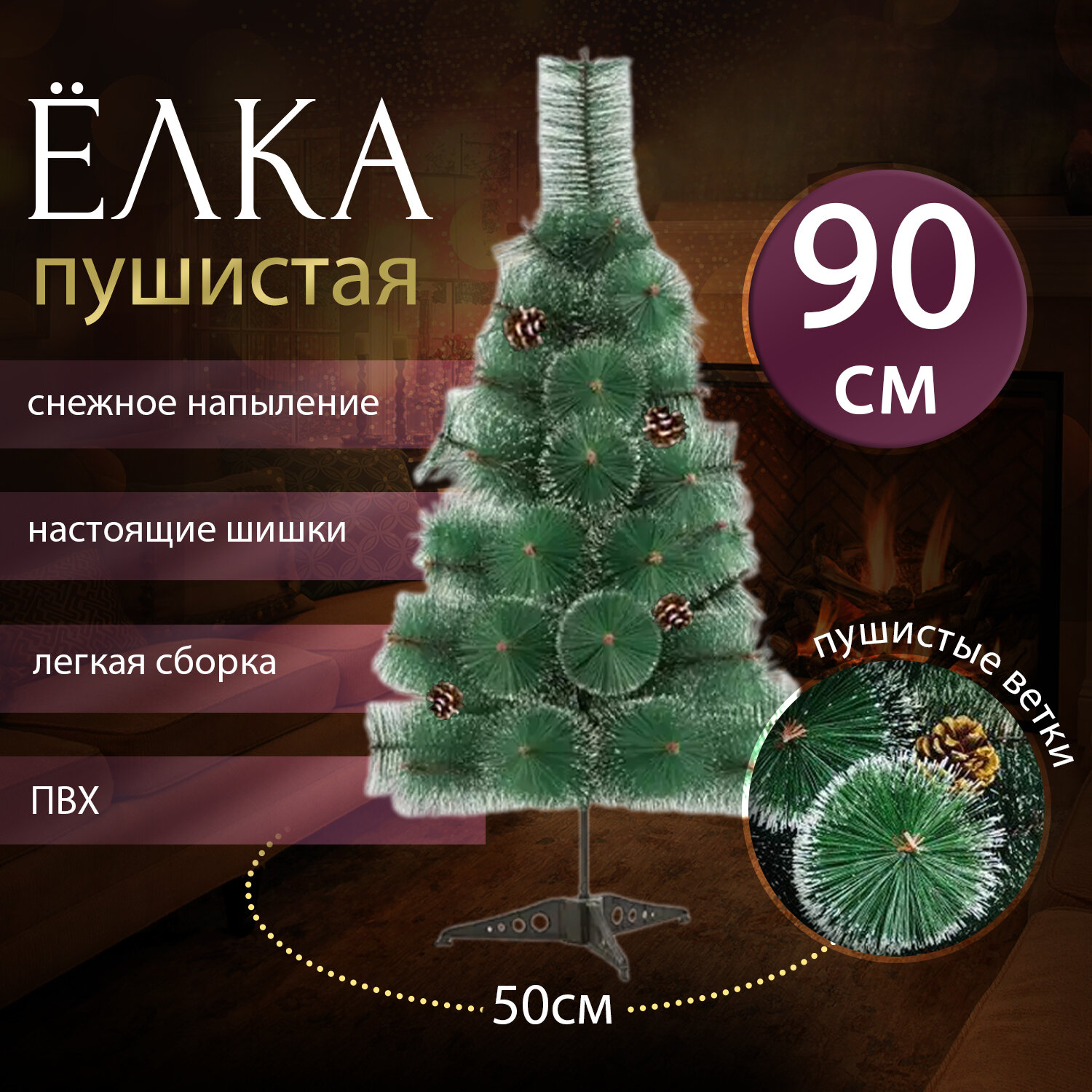 Купить Елка искусственная из ПВХ заснеженная с натуральными шишками. Высота 90 см.