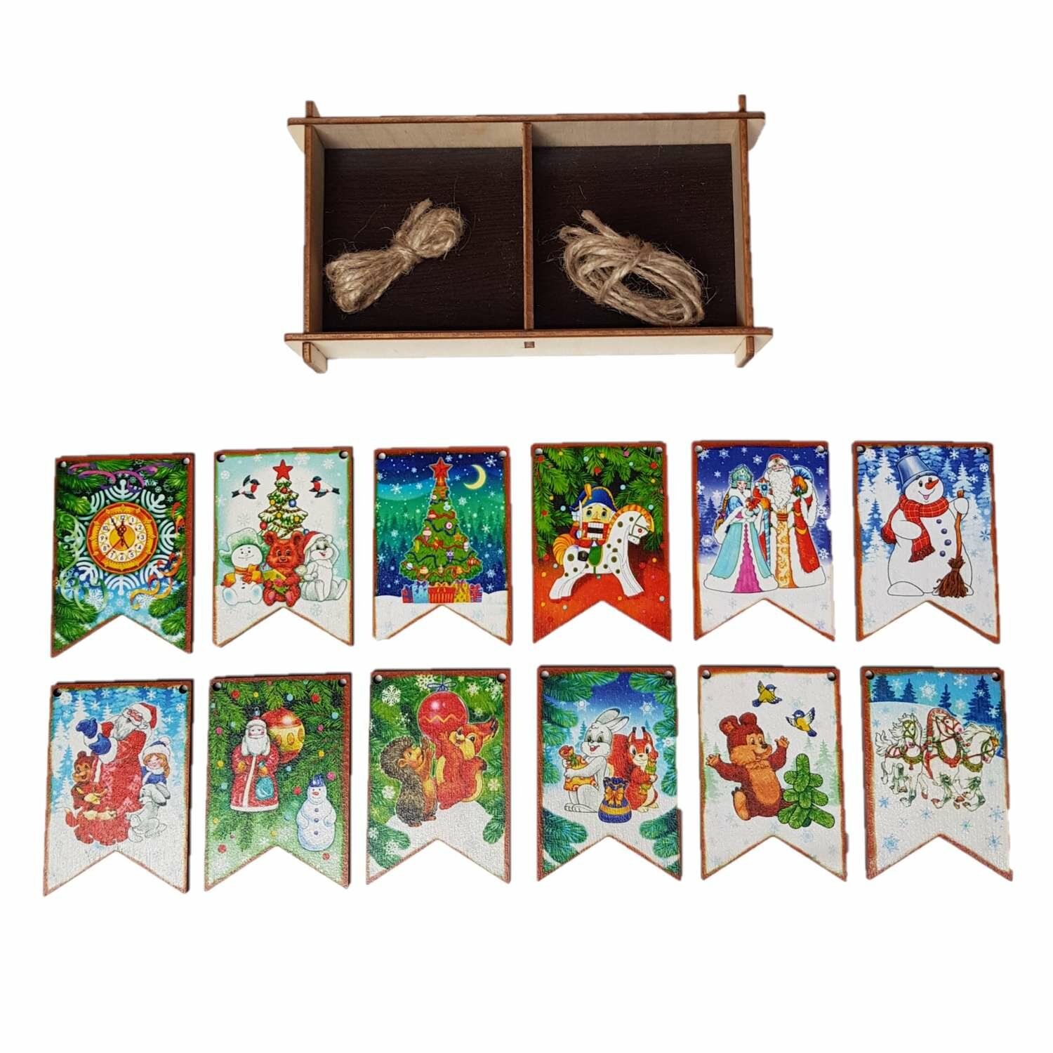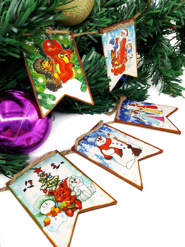 Набор Новогодние флажки (дерево) (7х4,5 см) 12 дет. арт.8582 /34 (Новый год) интересное: