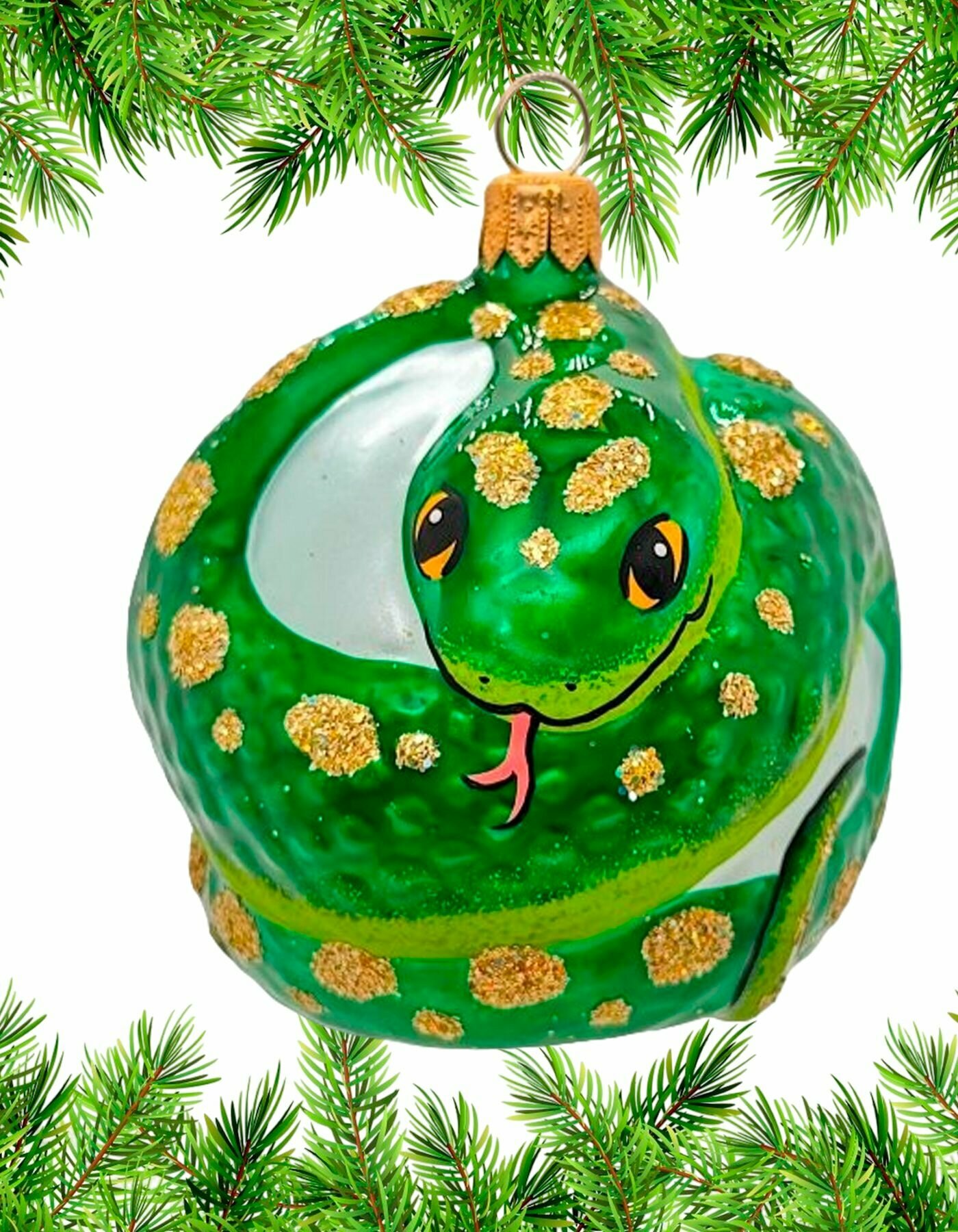 Ёлочный шар 75 мм "Талисман Змея" (Ёлочка) зелёный интересное: