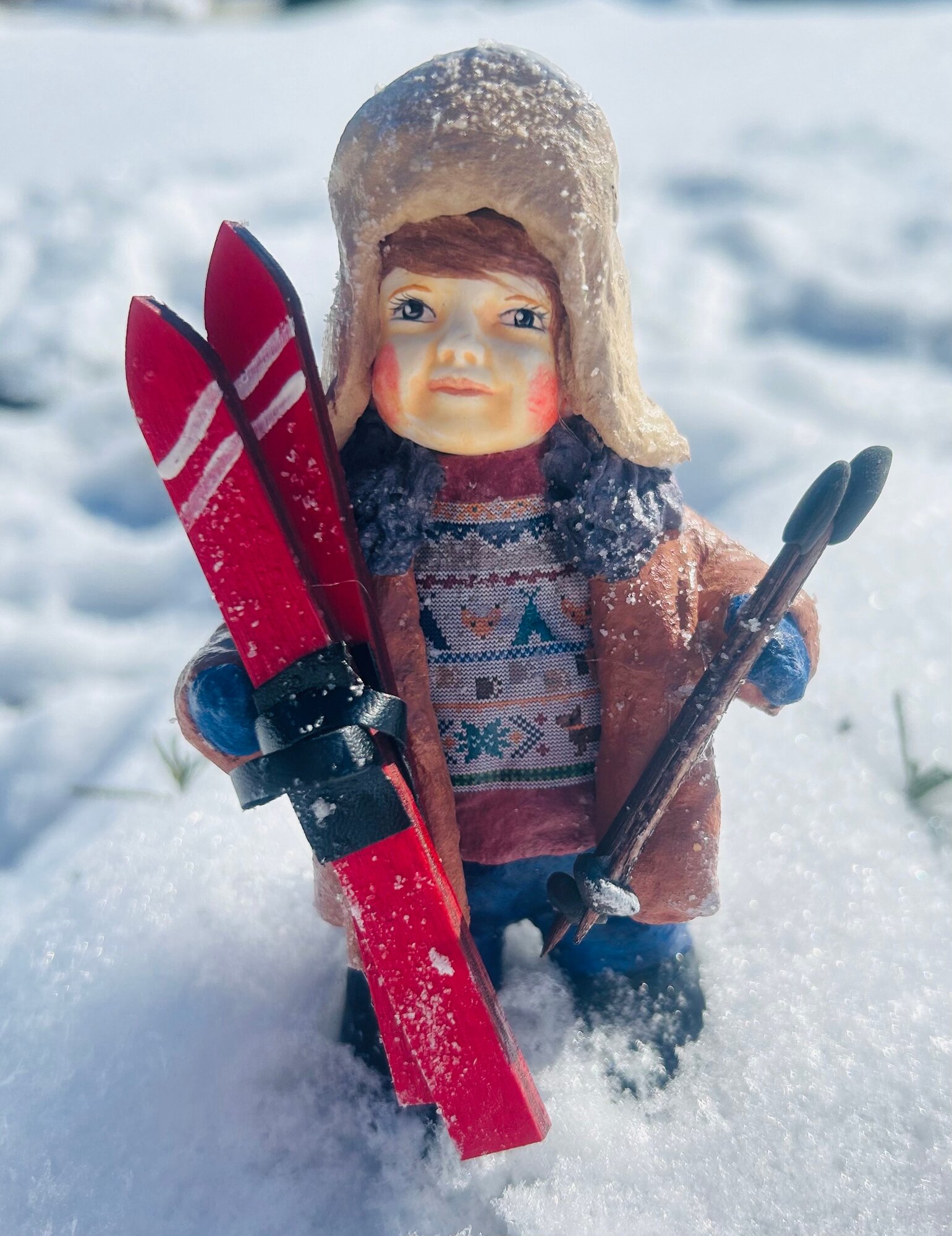 Купить Ватная елочная игрушка - мальчик с лыжами