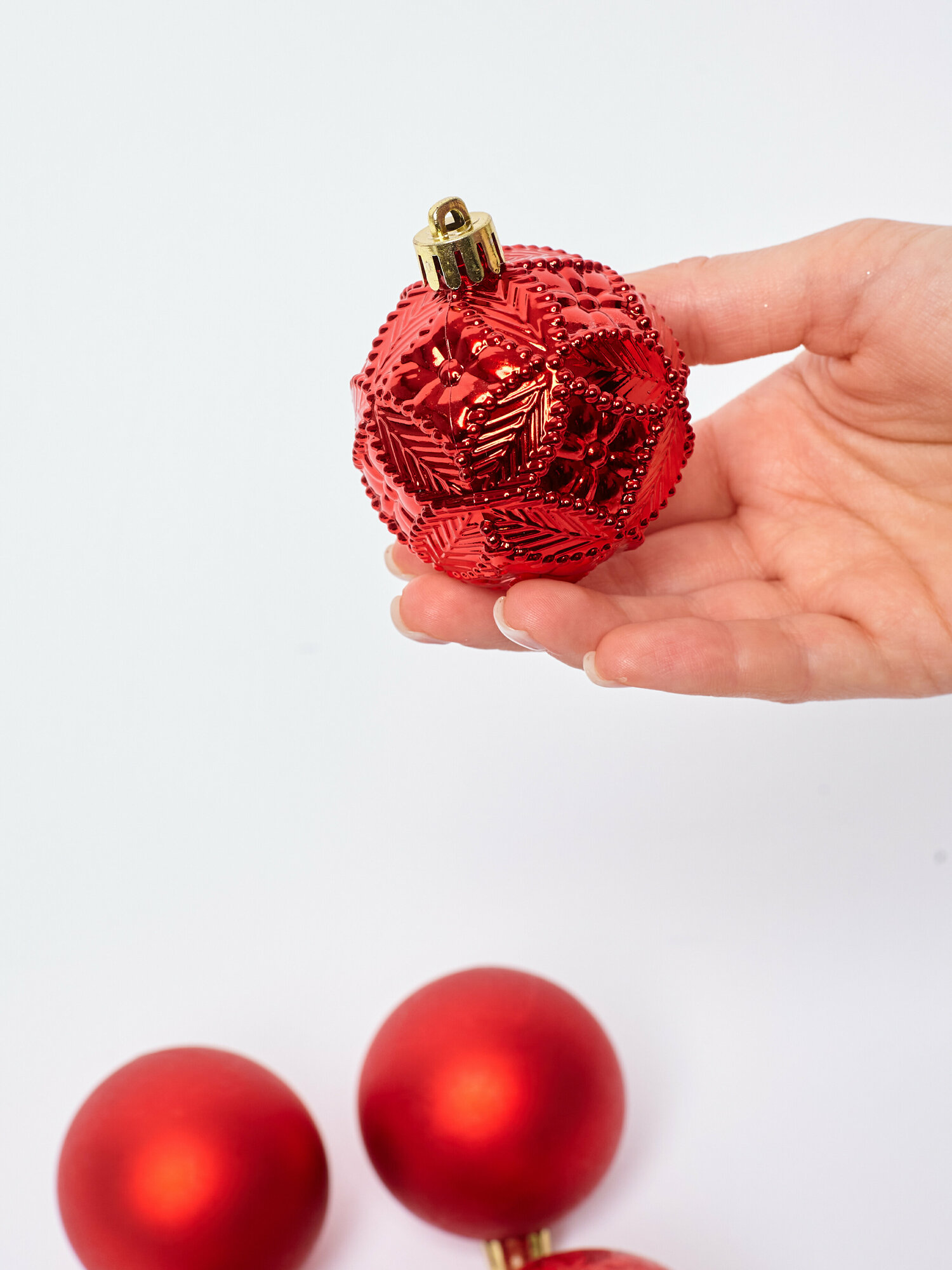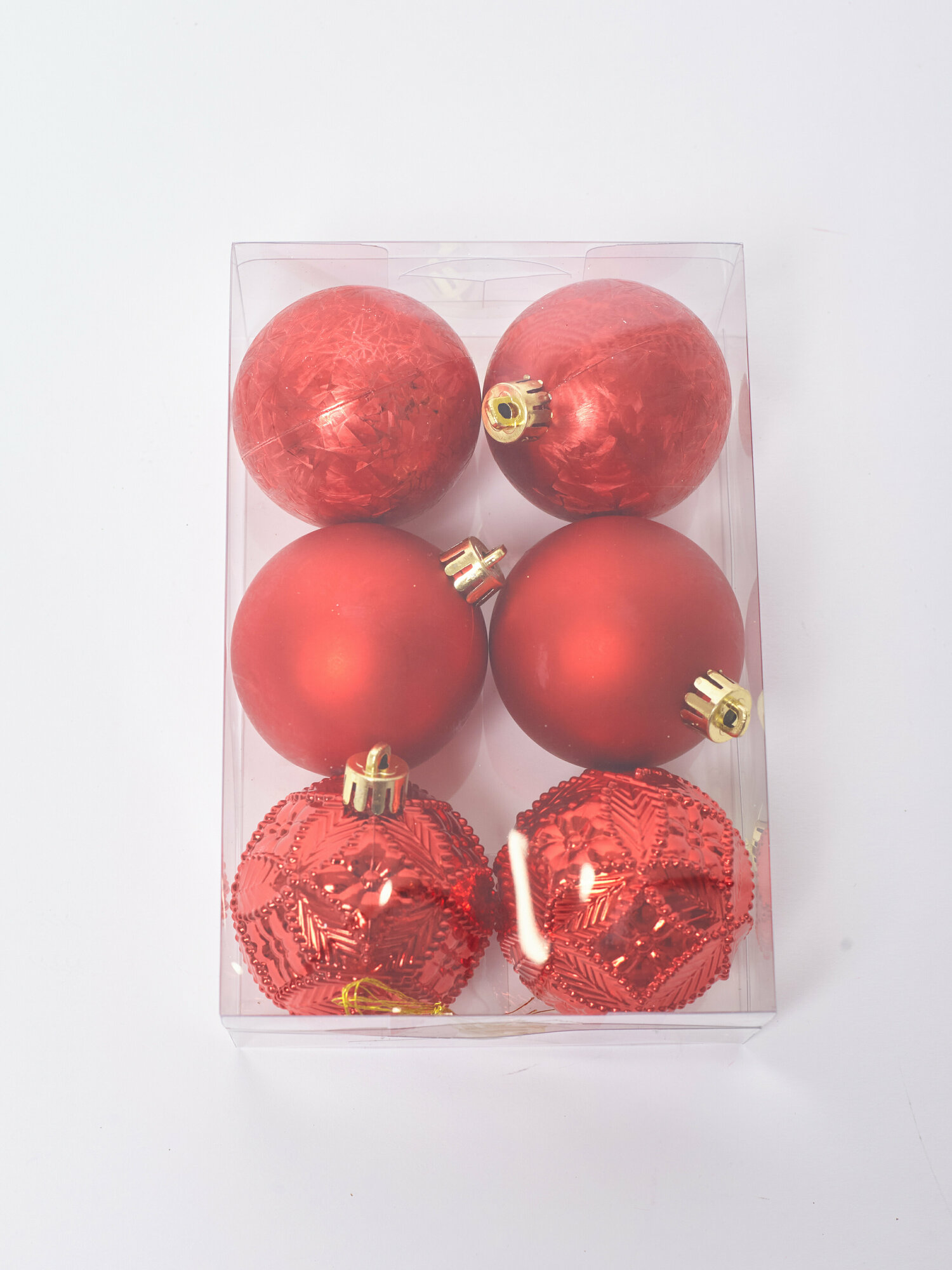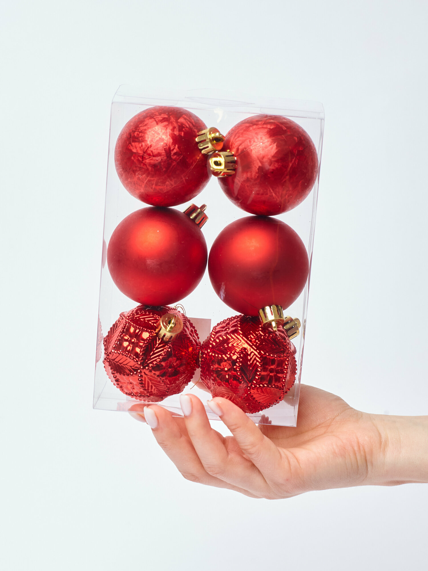 Купить Набор новогодних шаров, диаметр 6 см, матовые и глянцевые, красные, 6 шт. в коробке
