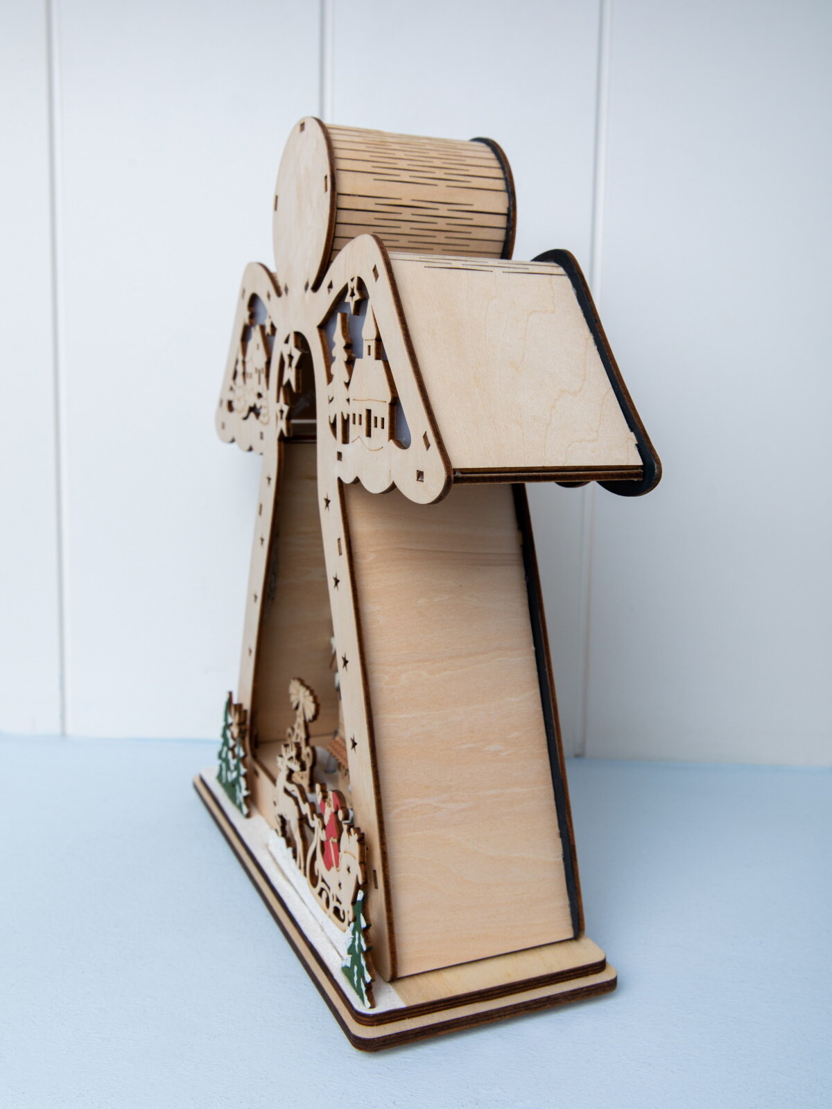 Домик новогодний с подсветкой, на окно, деревянный, фонарик, декор, подарок на Новый год, 29 см
