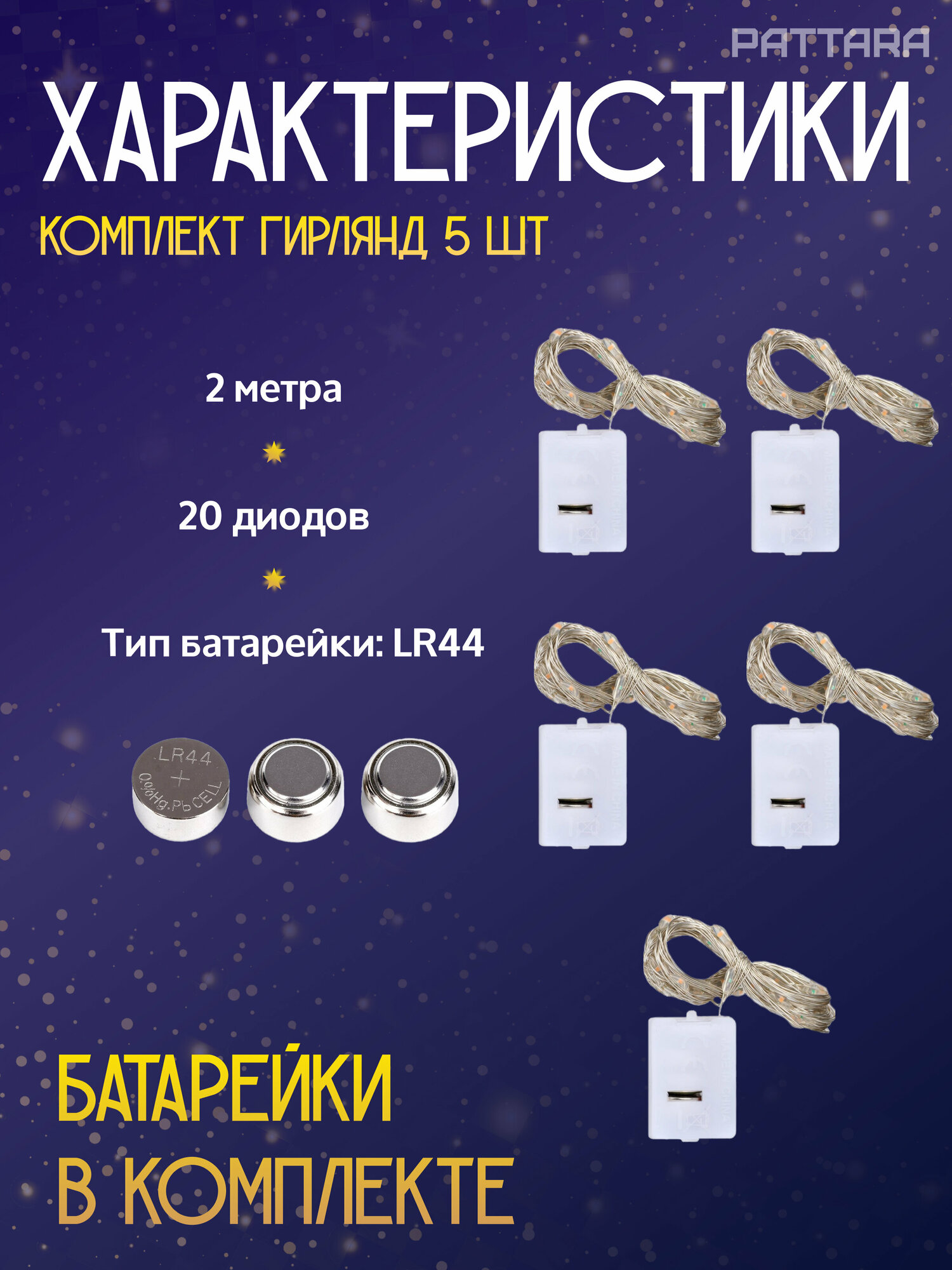 | Комплектация | Гирлянда, батарейки |