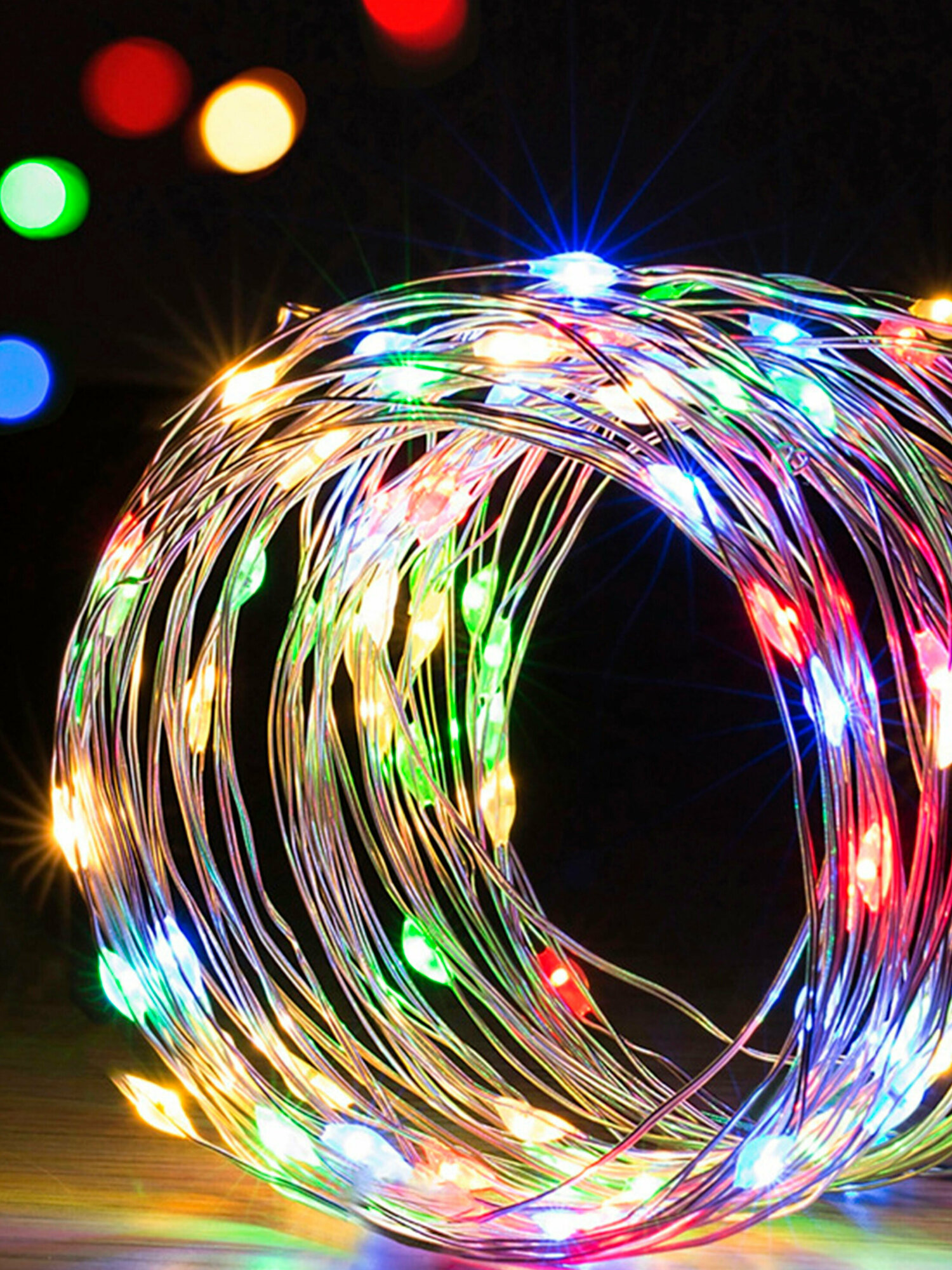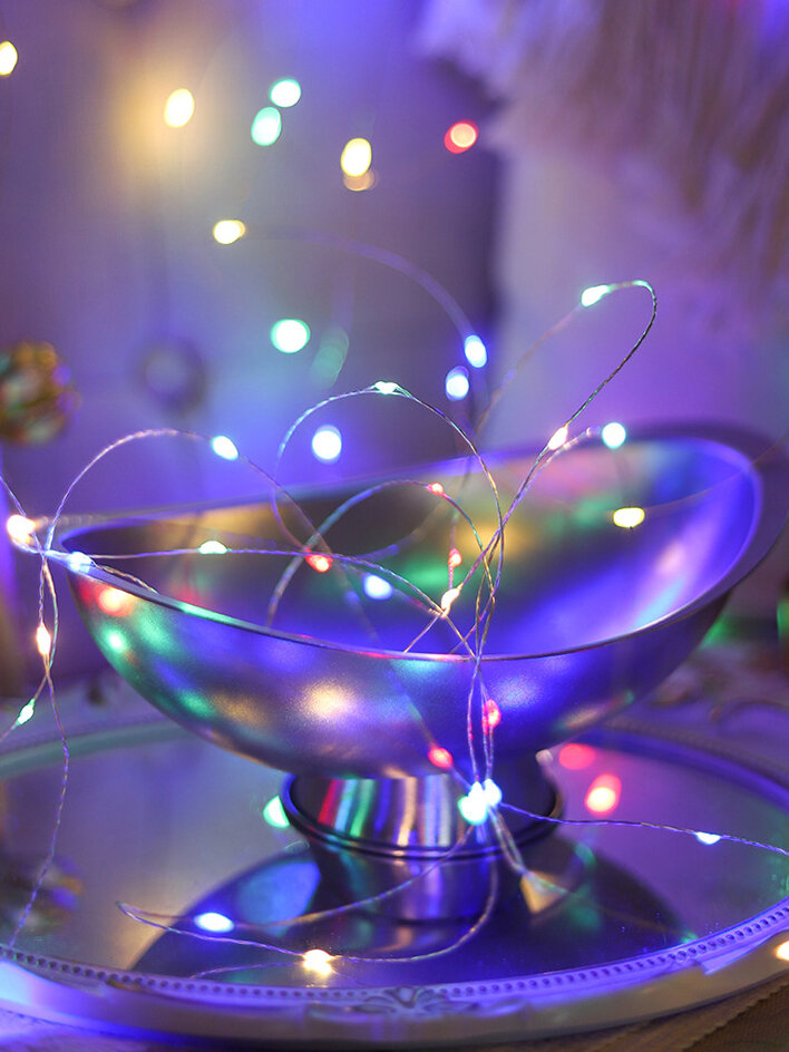 Купить Гирлянда роса на батарейках 2 м комплект из 5 шт., Мульти, цветное свечение