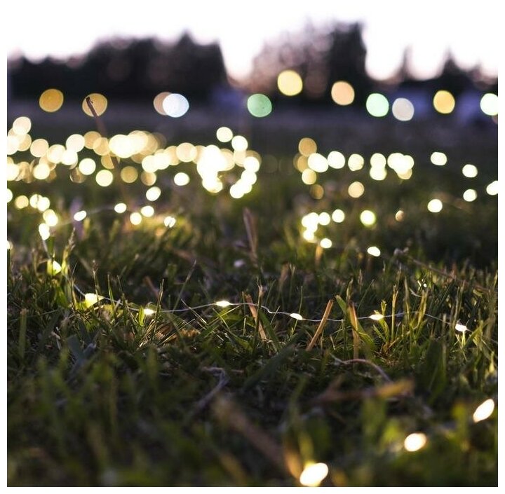 Гирлянда новогодняя на батарейках светодиодная теплый белый свет, 20м