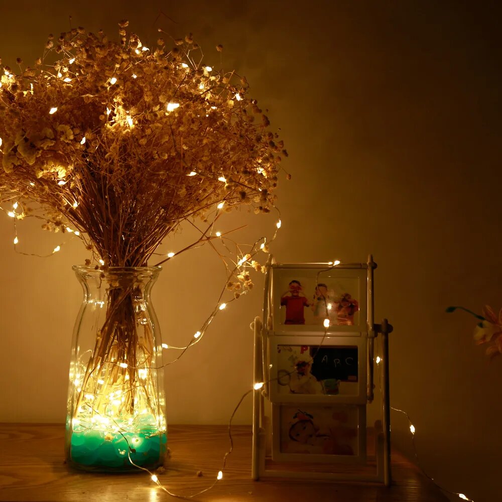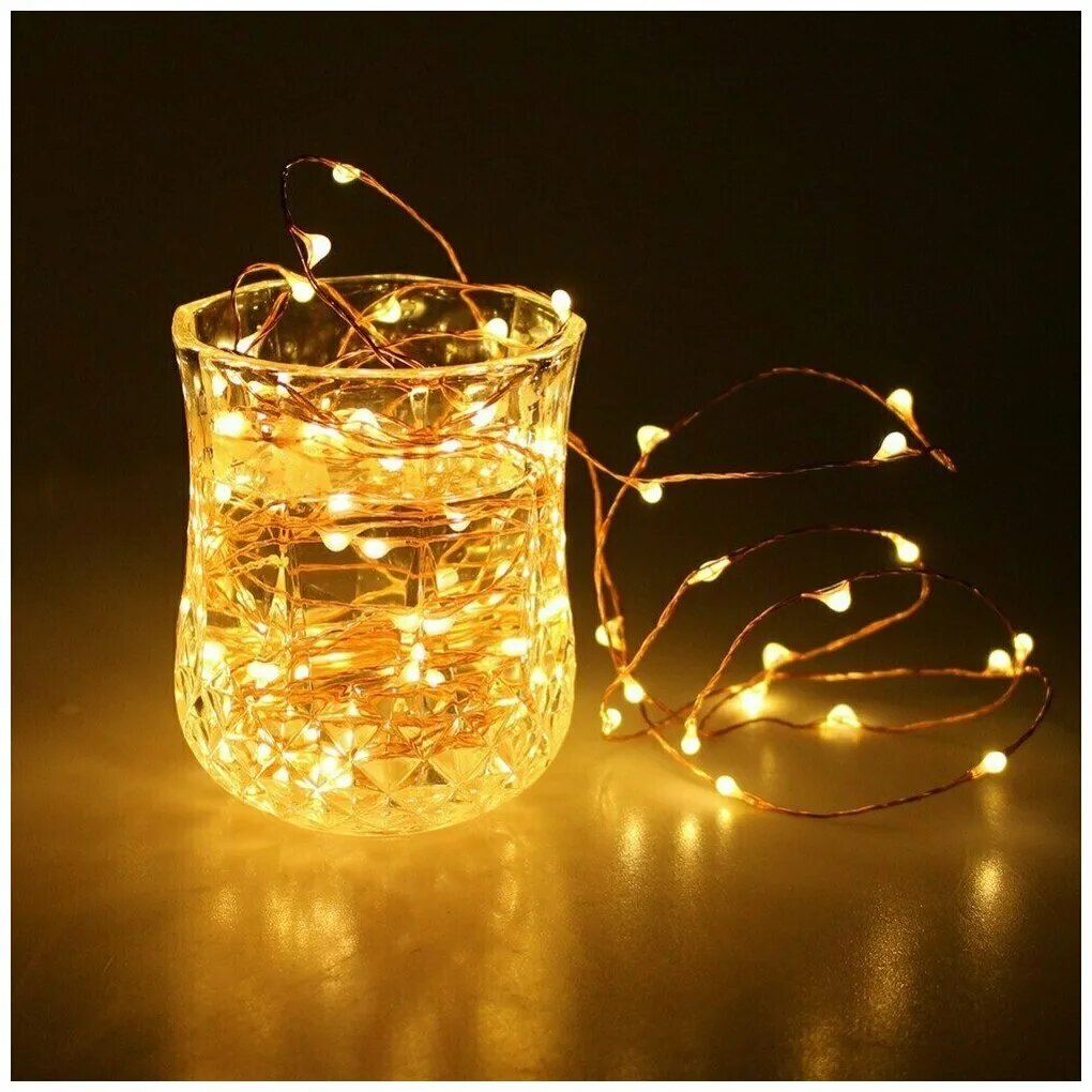 Гирлянда новогодняя на батарейках светодиодная теплый белый свет, 10м