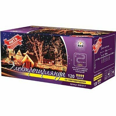 Электрогирлянда Нить 12 м, 120 желтых светодиодов, для использования внутри и снаружи помещений. интересное: