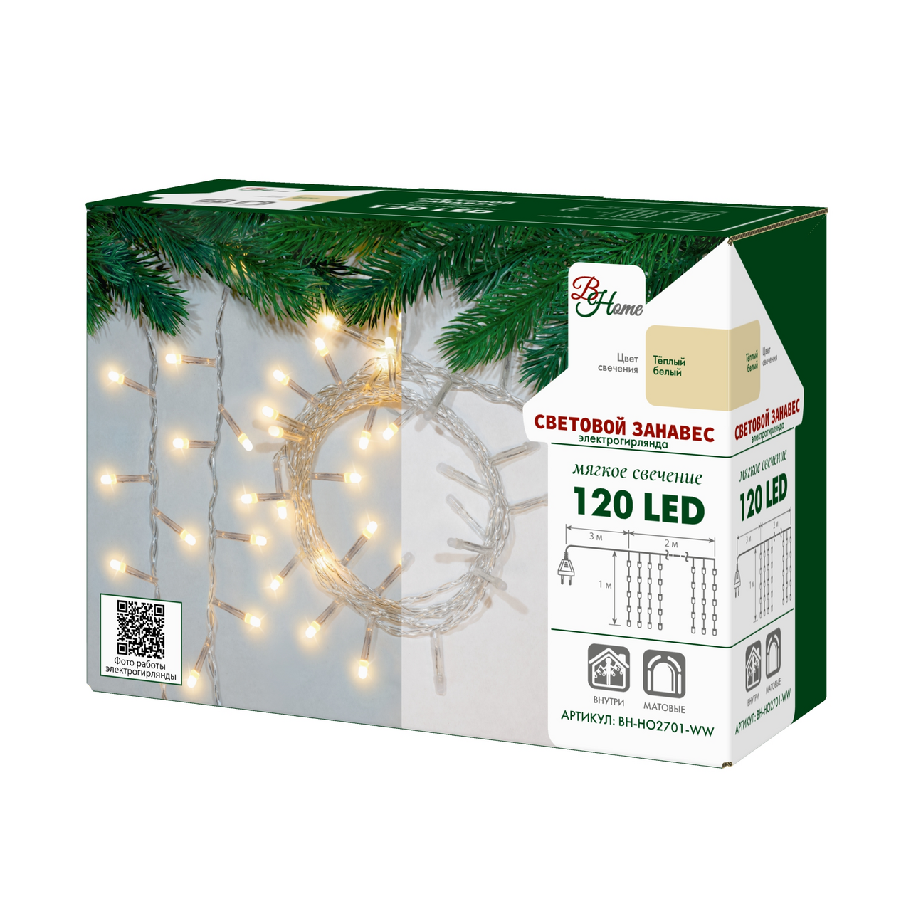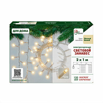 Электрогирлянда B&H BH-HO2701-WW, 2 х 1 х 1 м, 1 х 1 м, 120 ламп, теплый белый/бесцветный провод