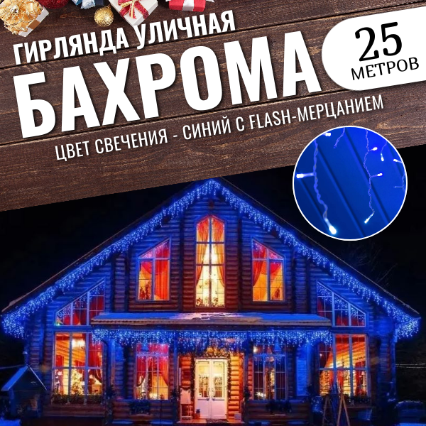 Гирлянда уличная бахрома 25м белый провод / Гирлянда светодиодная, синий интересное: