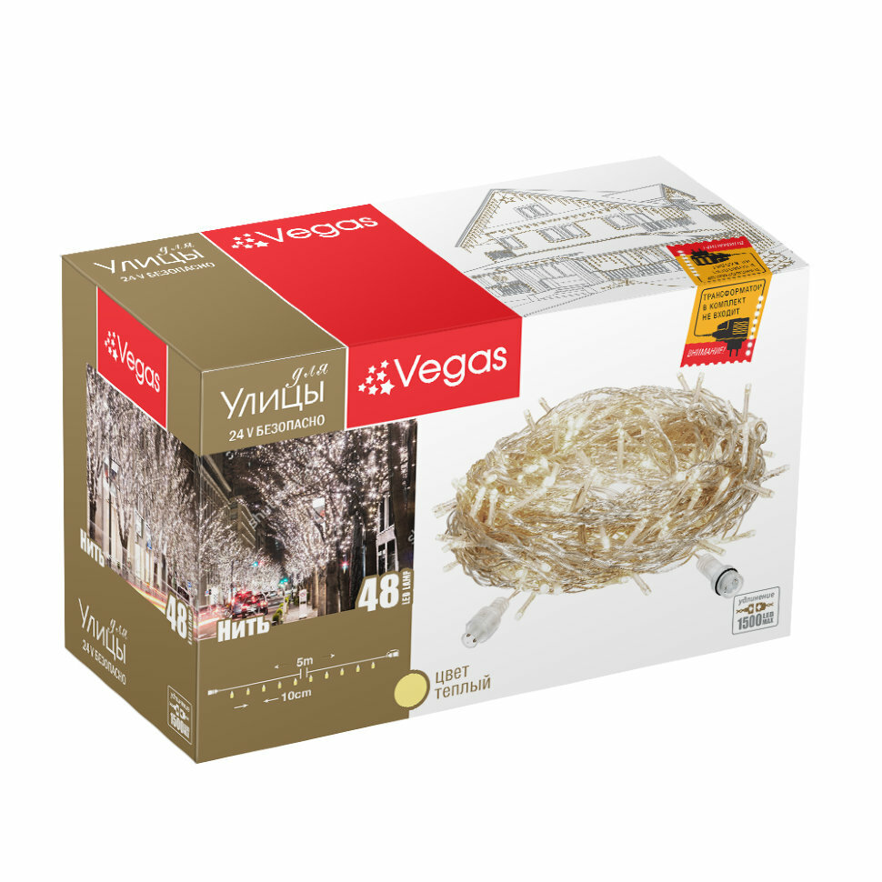Купить VEGAS 24V Электрогирлянда-конструктор "Нить" 48 теплых LED ламп, прозрачный провод, 5 м