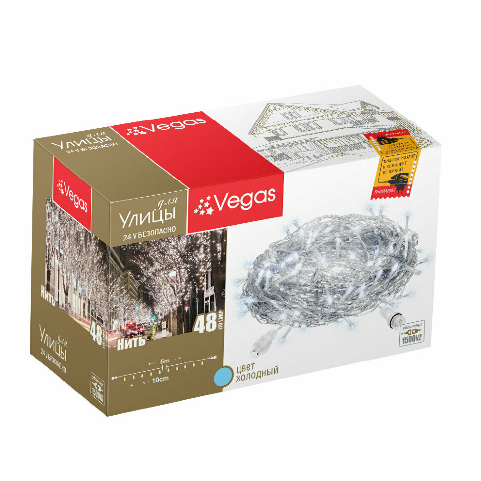 СохранитьГирлянда уличная Vegas Нить холод., 48л,5,0м,без интересное: