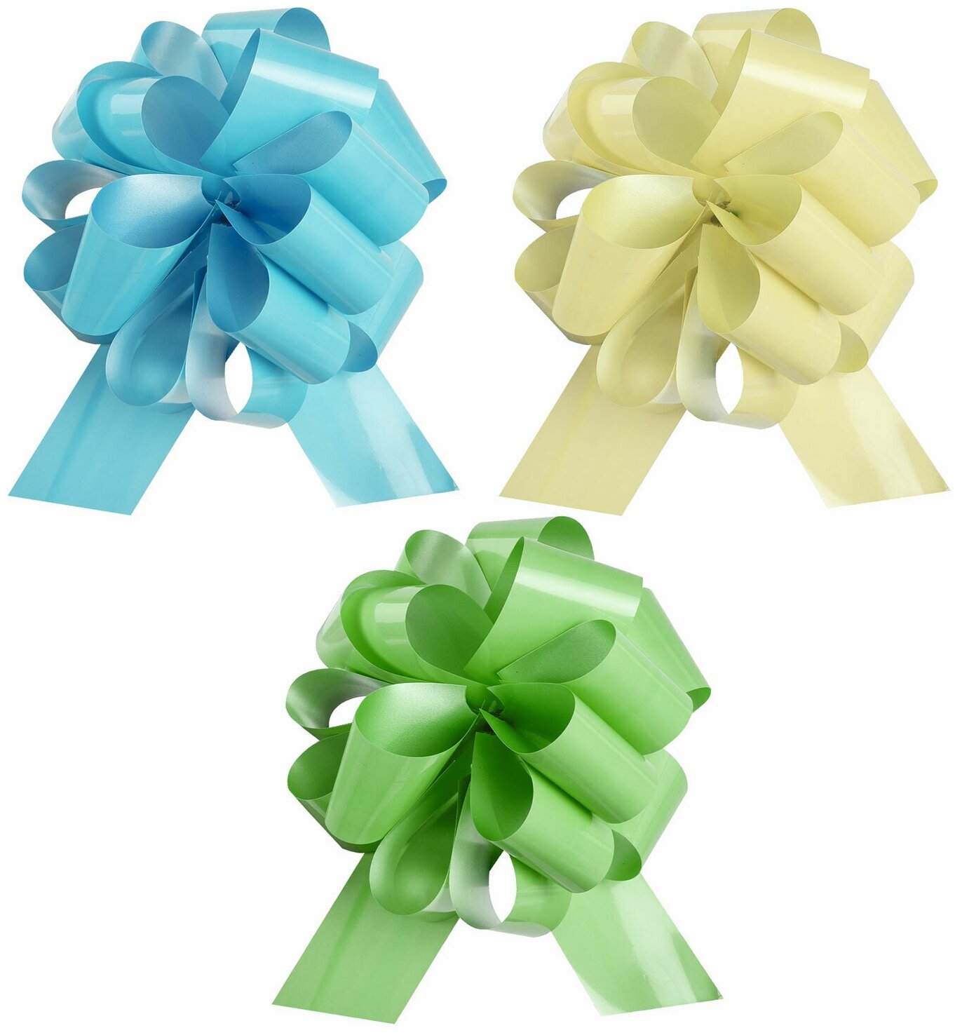 Купить Бант шар / бантик подарочный упаковочный большой для подарка диаметр 15 см Набор 3 штуки, глянец, желтый, мятный, голубой, Золотая Сказка, 591834