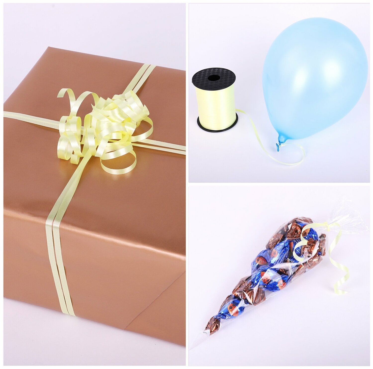 Купить Лента упаковочная подарочная декоративная для воздушных шаров и подарков, 5 ммх500 м, желтая, Золотая Сказка, 591810