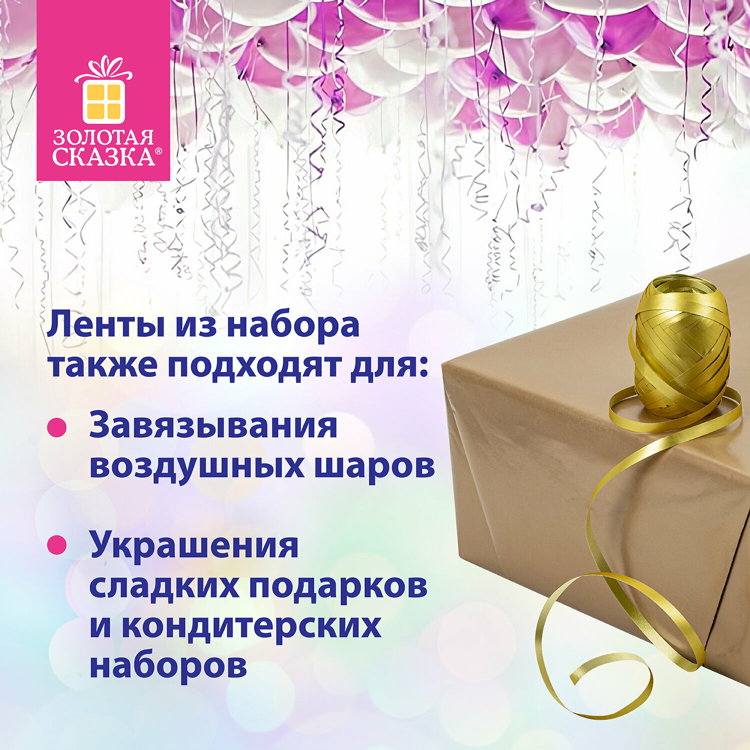 Ниже Вы можете прочитать отзывы на Набор бант / бантик и лента упаковочная подарочная декоративная для воздушных шаров и подарков 4 банта, 2 ленты, матовый металл Золотая Сказка, 591850, ознакомится с подробными характеристиками, посмотреть интересные обзоры и фотографии на Набор бант / бантик и лента упаковочная подарочная декоративная для воздушных шаров и подарков 4 банта, 2 ленты, матовый металл Золотая Сказка, 591850.