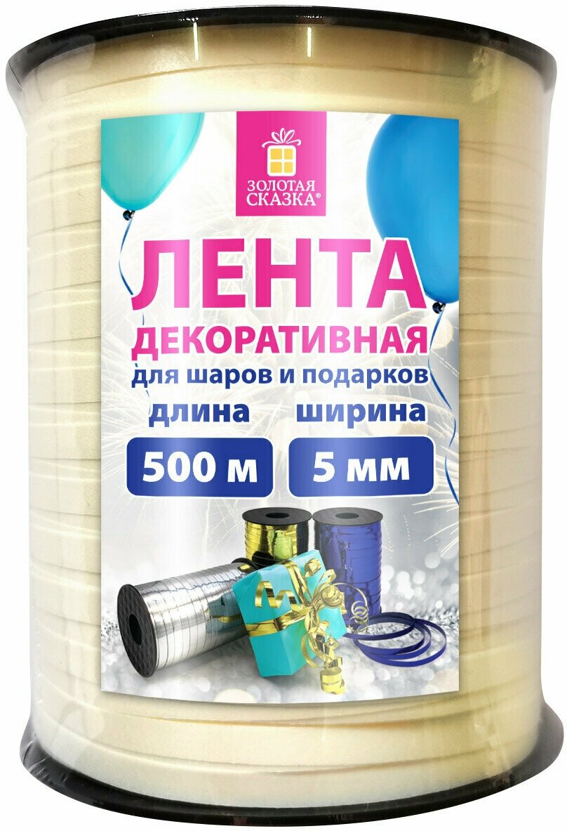 Купить Лента упаковочная Золотая сказка декоративная для шаров и подарков, 5 мм, 500 м, бежевая (591814)