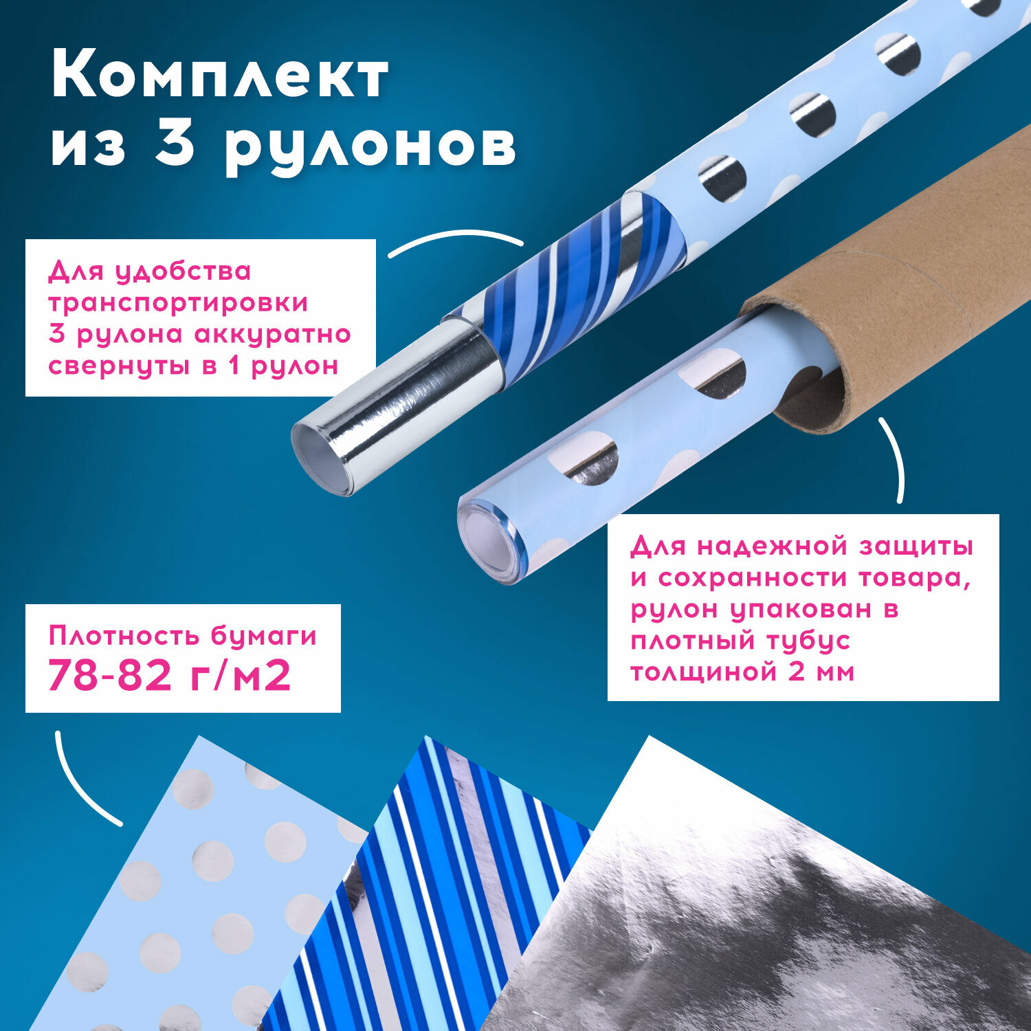 Купить Бумага упаковочная подарочная С эффектами набор 3 шт., "Blue Sky", 70х100 см, золотая сказка, 591941, 2наб. в компл.