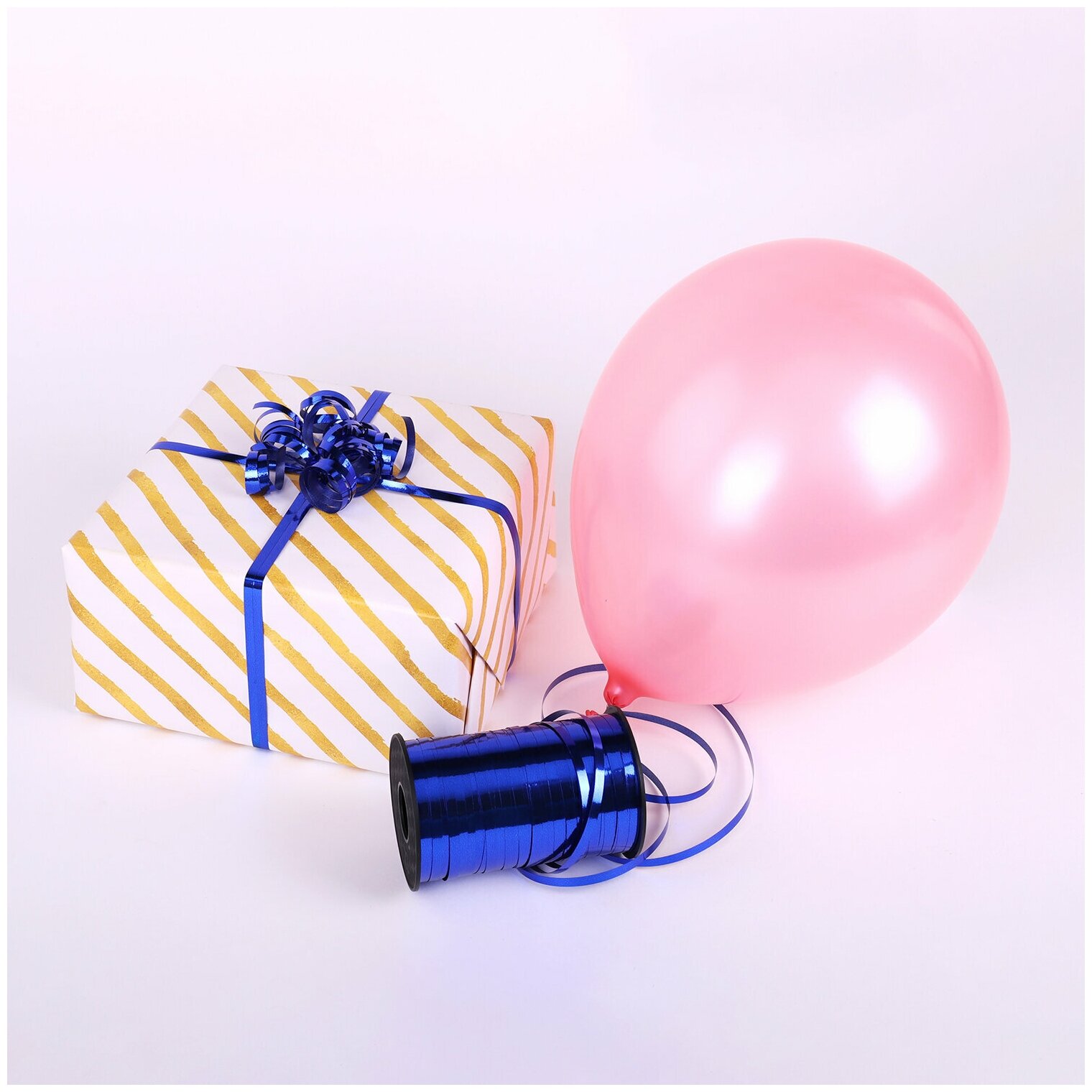 Купить Лента упаковочная подарочная декоративная для воздушных шаров и подарков металлик 5ммх250м синяя, Золотая Сказка, 591818