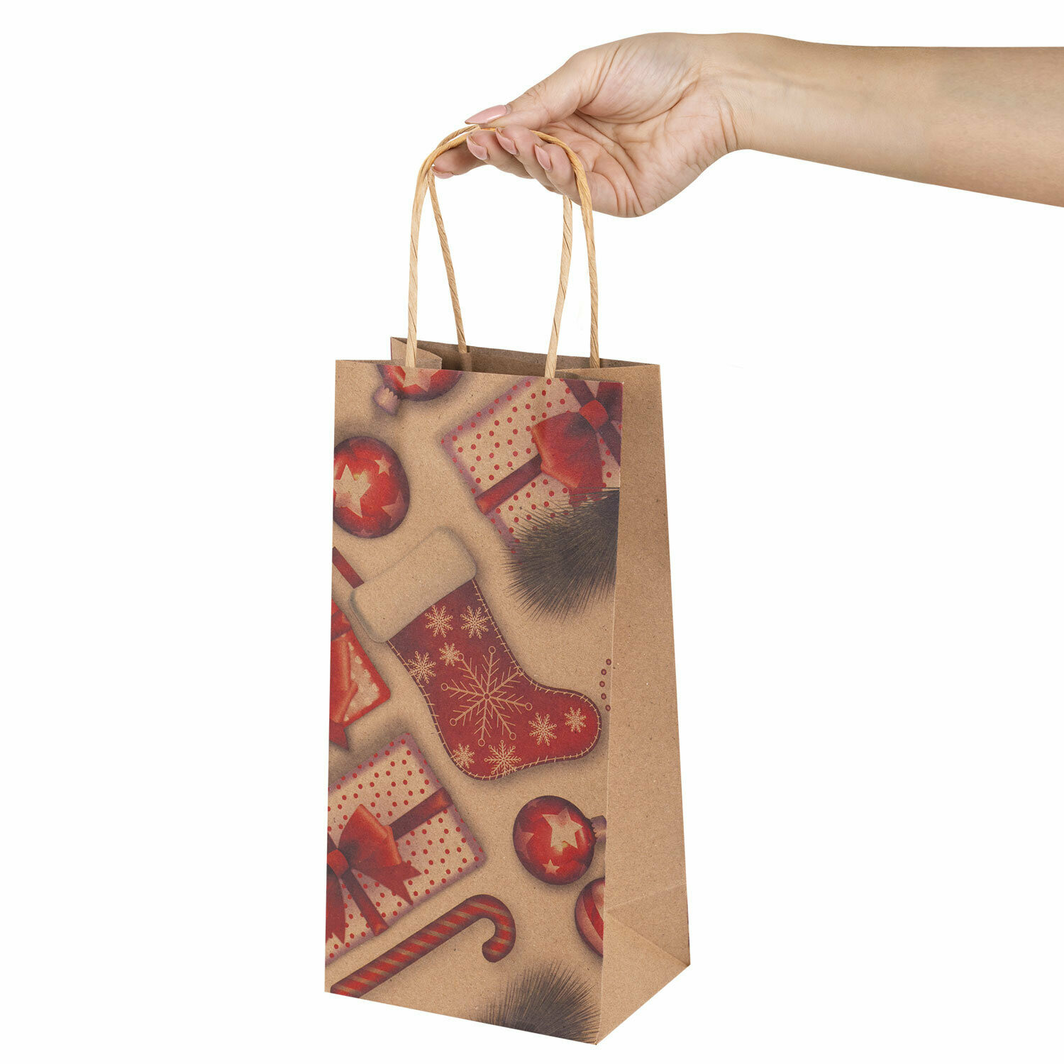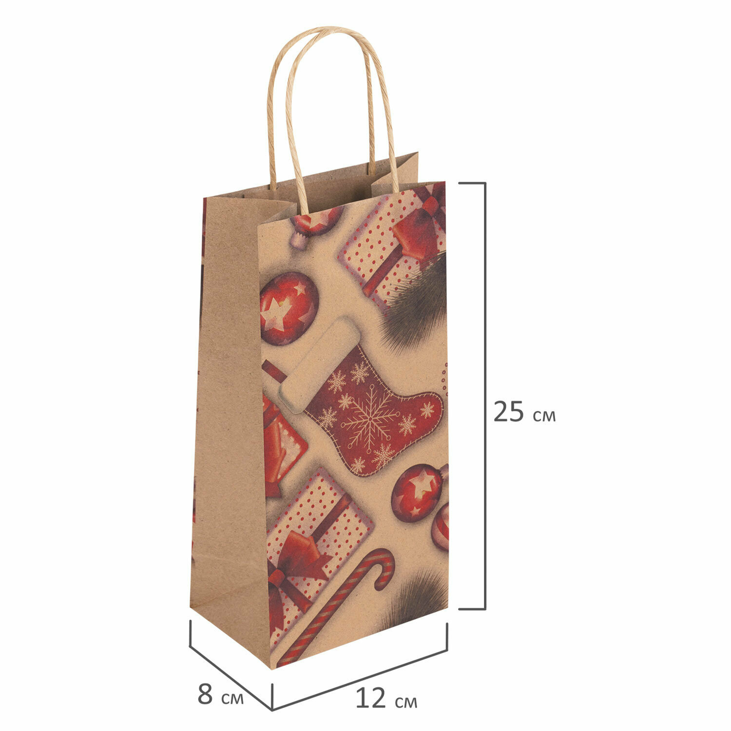 Пакет подарочный комплект 10 штук, новогодний, 26x13x32 см, "Christmas Kraft", золотая сказка, 591961