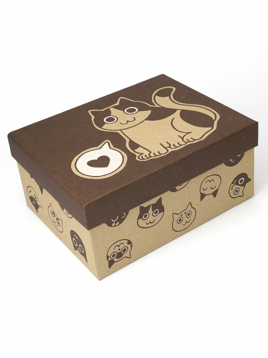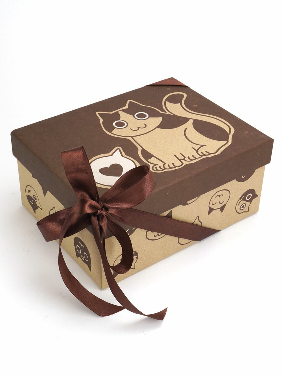 Купить Подарочная крафт-коробка с бумажным наполнителем и атласной лентой "Котики", 22х17х10 см, 1шт