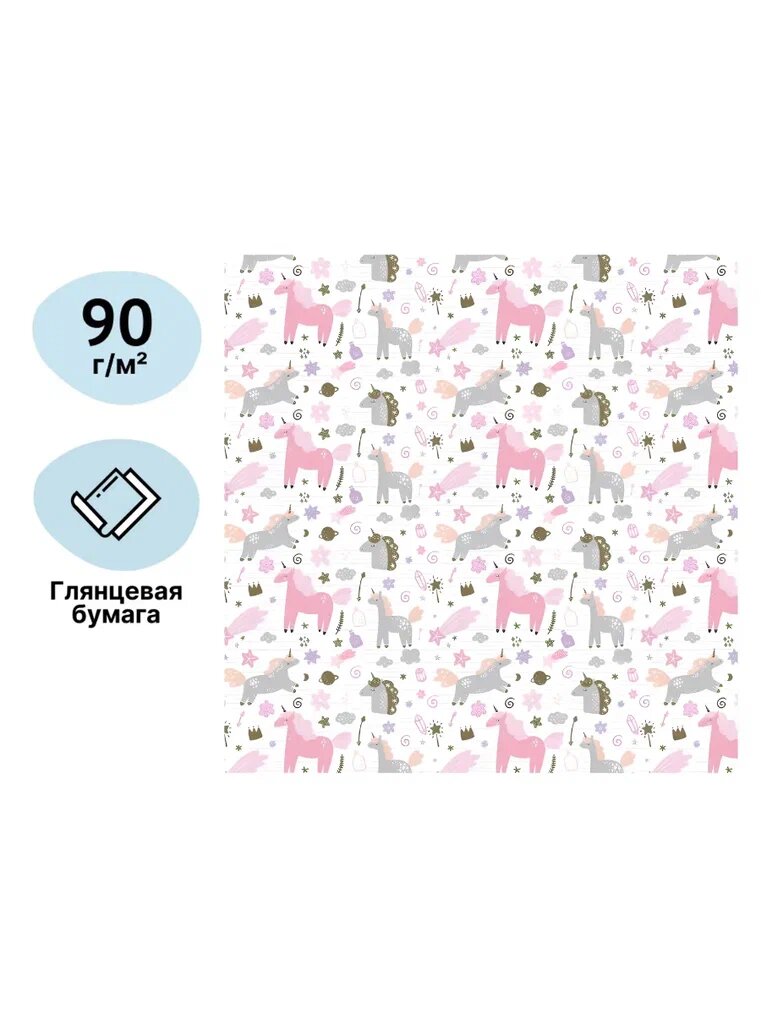 Упаковочная бумага глянц. 70*100см, "Unicorns", 90г/м2, AXLER интересное: