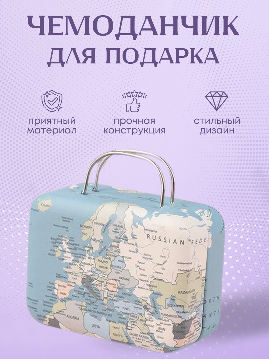 Коробочка чемоданчик для хранения мелочей металлическая подарочная маленькая, футляр жестяной для украшений, подарков с картой мира интересное: