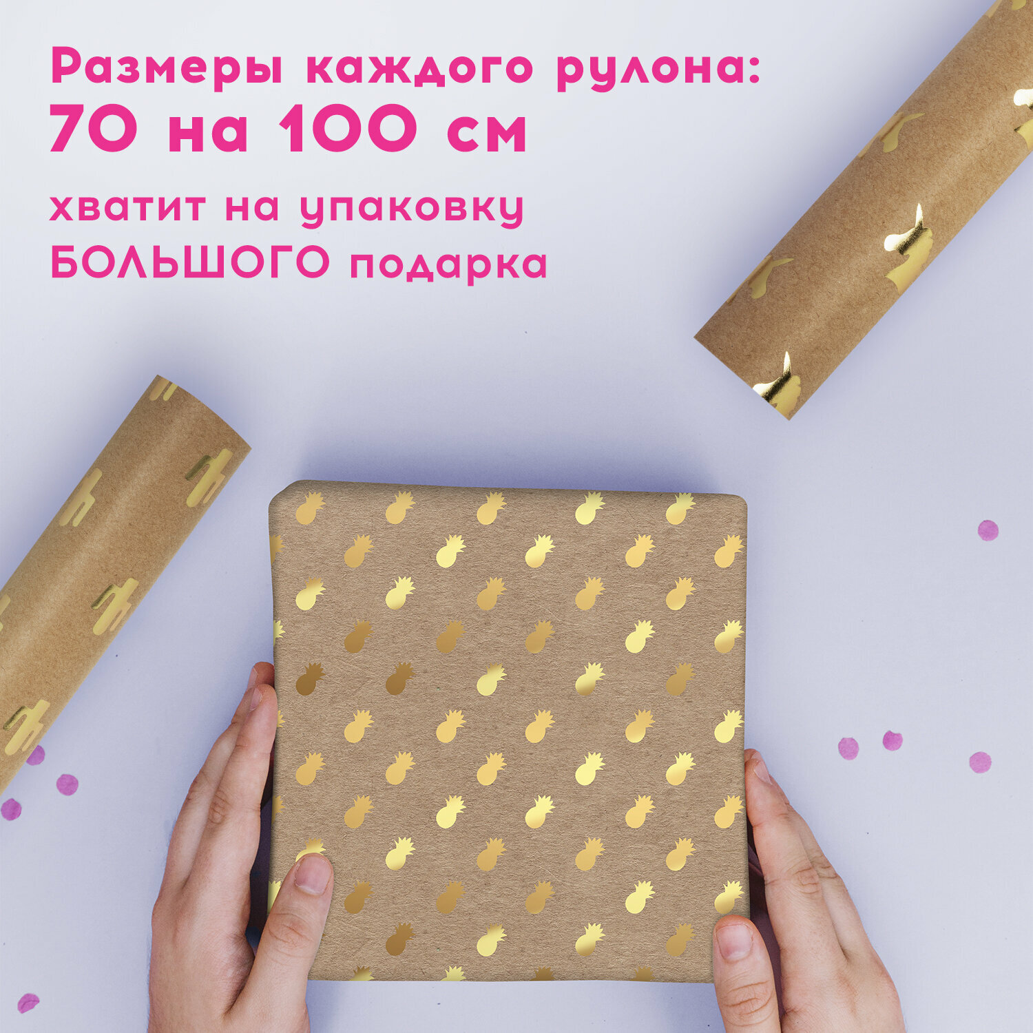 Упаковочная бумага 70х100 см для подарков крафтовая, набор 3 штуки, 3 дизайна, подарочная упаковка, Золотая Сказка, Kraft Casual, 592063