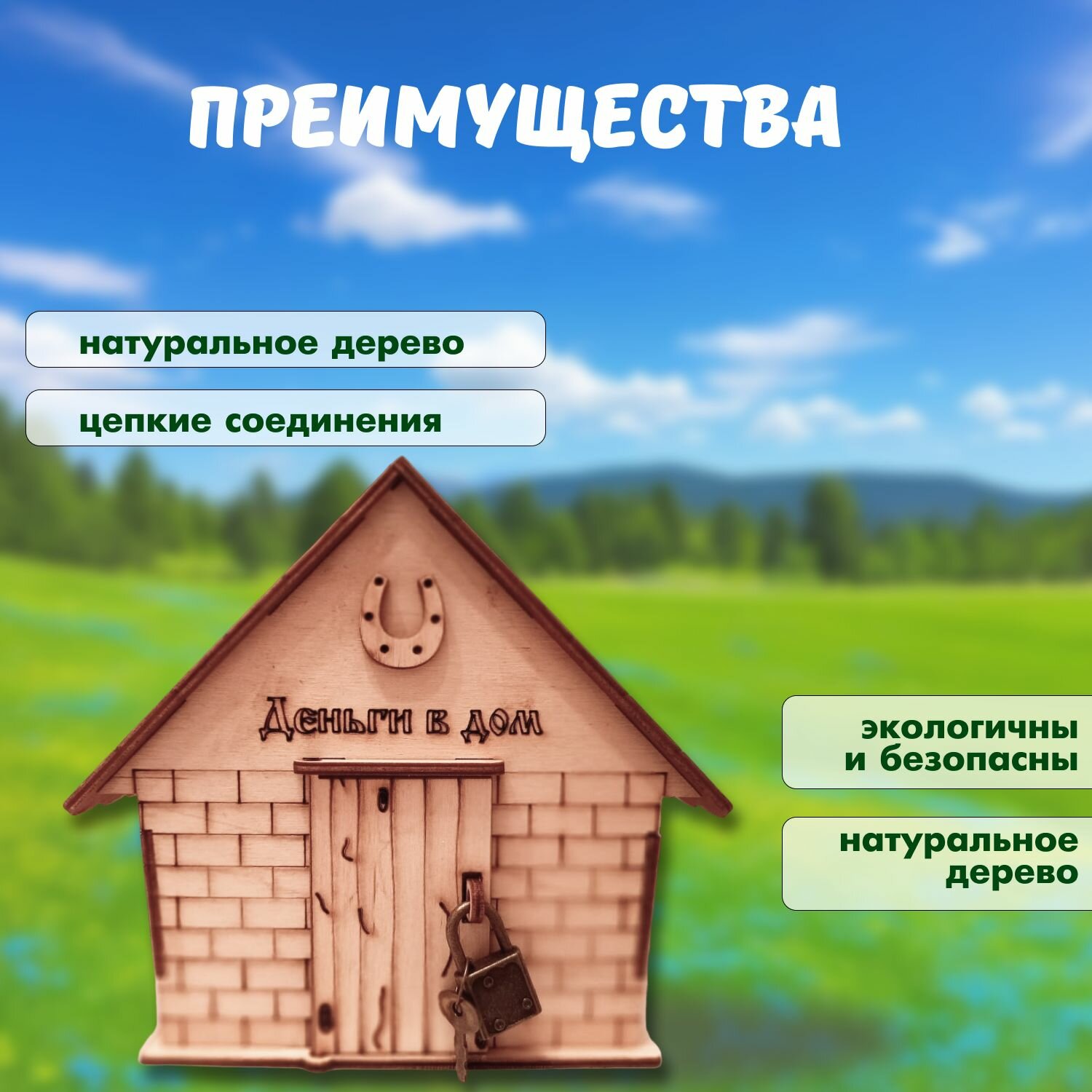 Копилка из дерева "Деньги в дом",Сказочный деревянный домик маленький, 12х13х11 интересное: