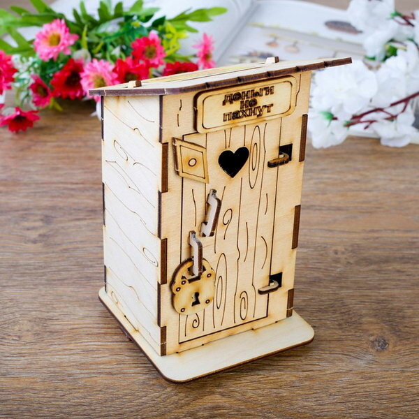 Копилка деревянная, "Туалет", с открывающейся дверью, 15 см интересное: