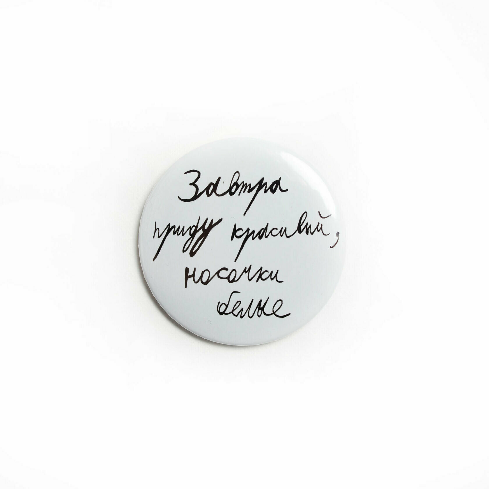 Купить Значок типографский с цитатой "Завтра приду красивый, носочки белые"
