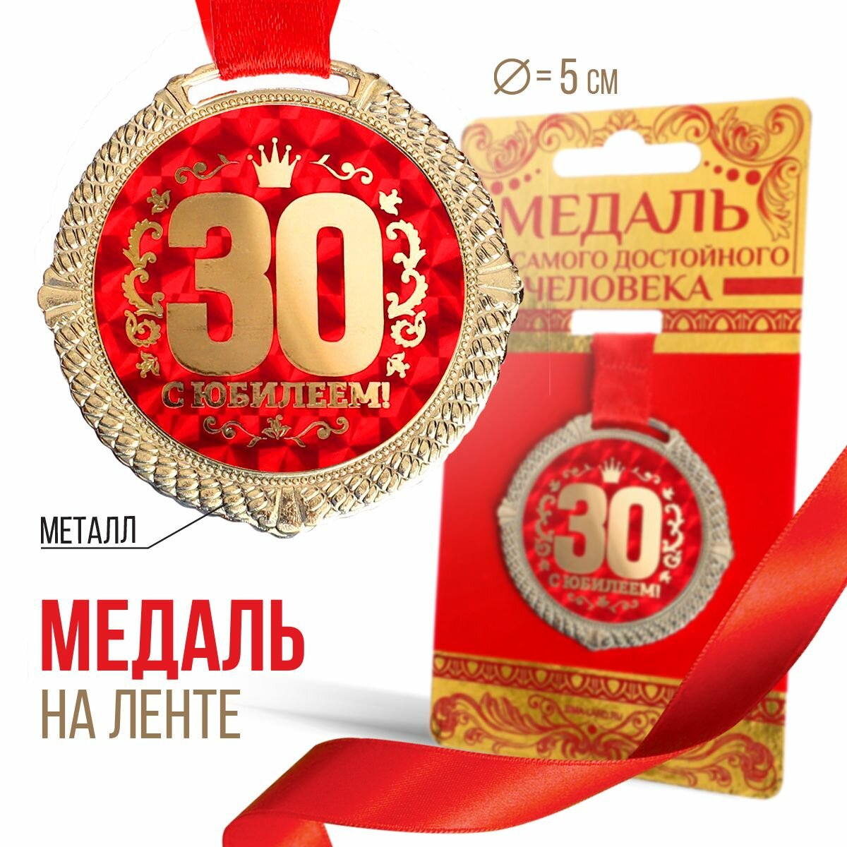Медаль подарочная сувенирная на бархатной подложке "С юбилеем 30 лет", d = 5 см интересное: