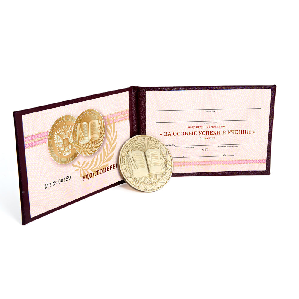 Купить Комплект медали "За особые успехи в учении" 1 ст. золотая, образец 2023 г.