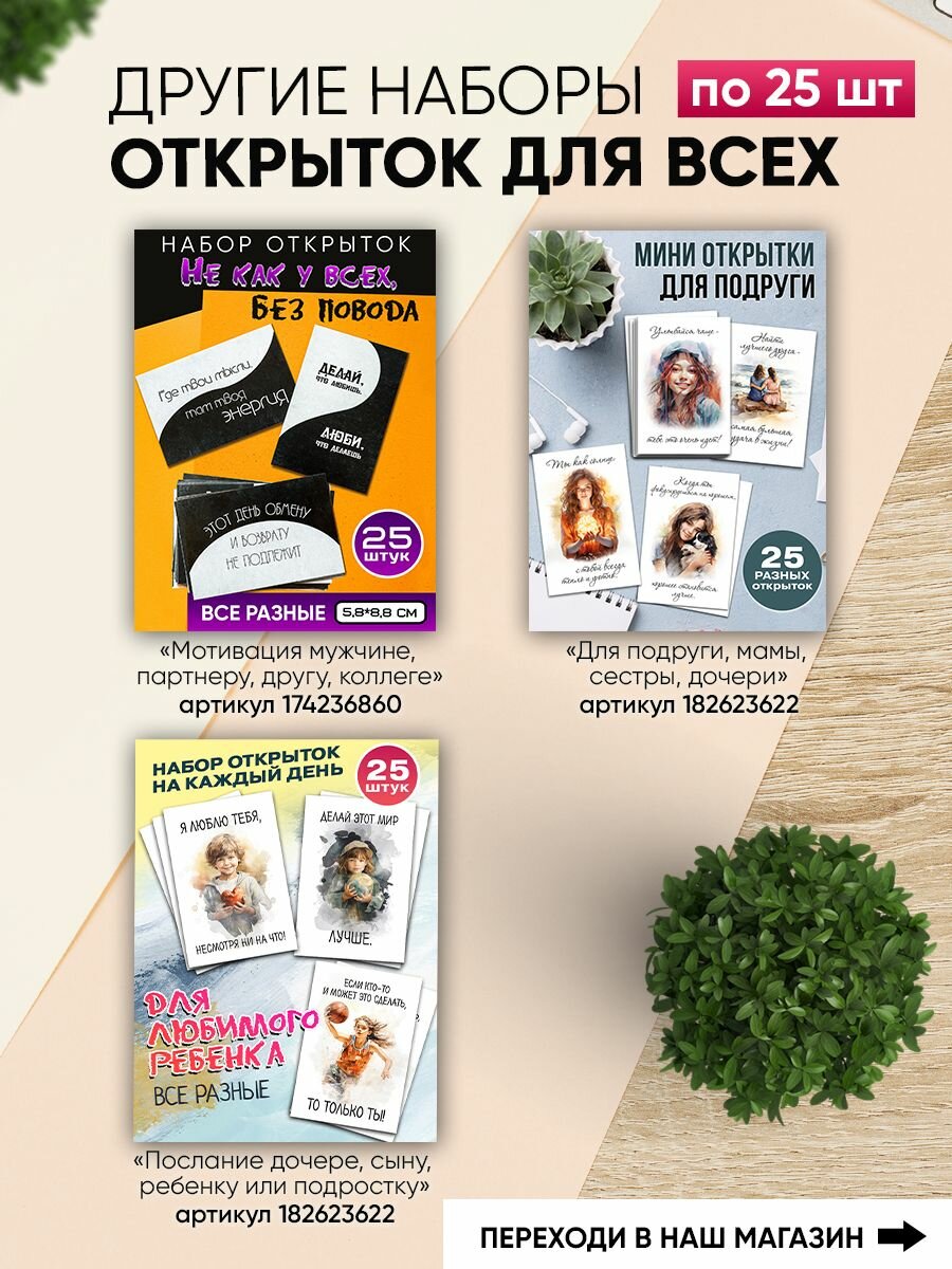 Мини открытки, мотивационные для праздника и по любому поводу, с пожеланиями 25 шт, 6*9 см