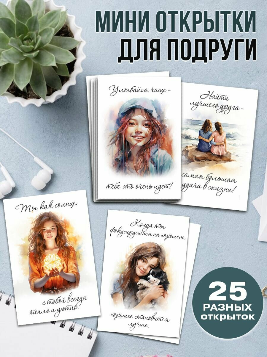 Мини открытки, мотивационные для праздника и по любому поводу, с пожеланиями 25 шт, 6*9 см