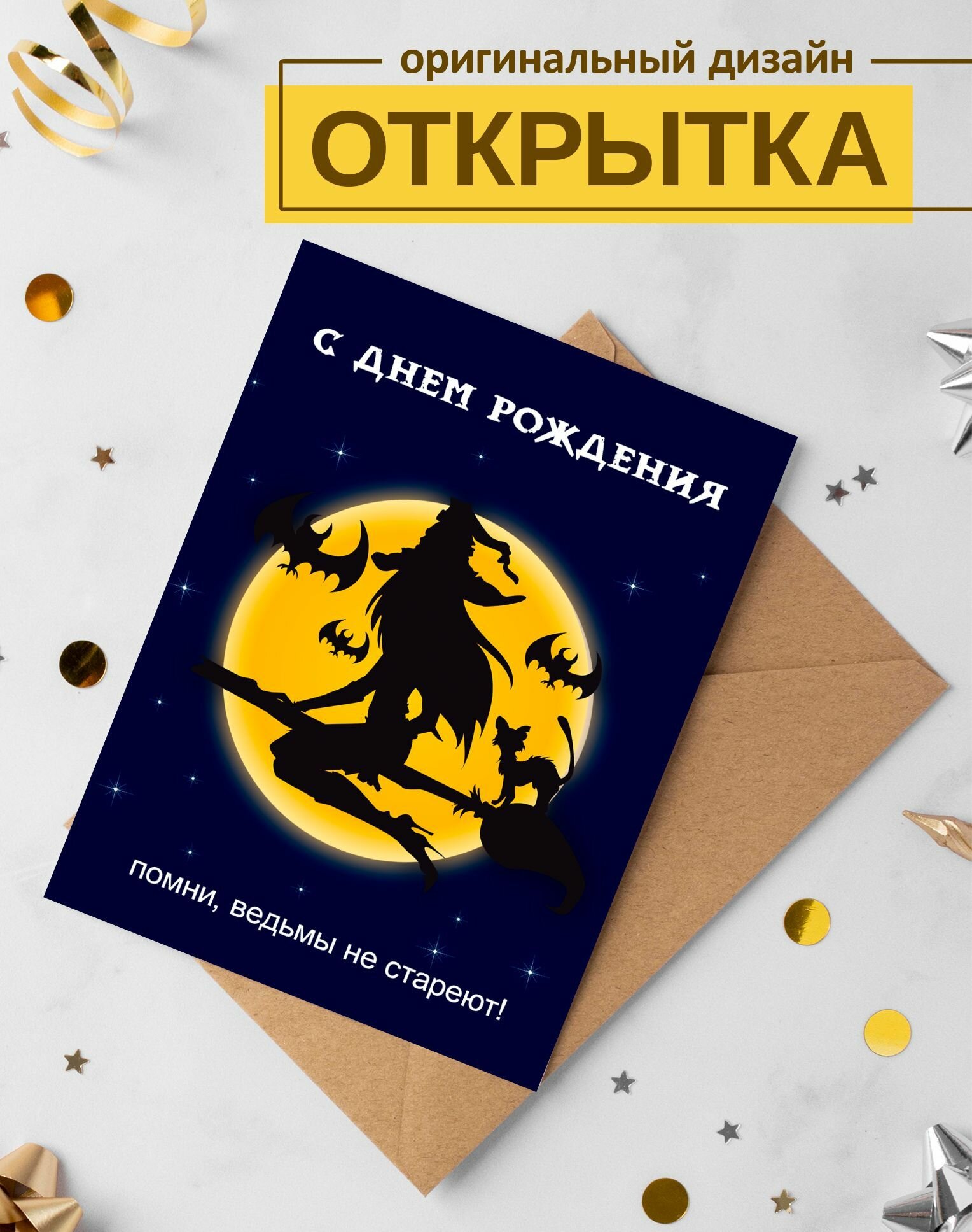 Открытка "Ведьмы не стареют" поздравительная, с конвертом, односторонняя, 15x10см