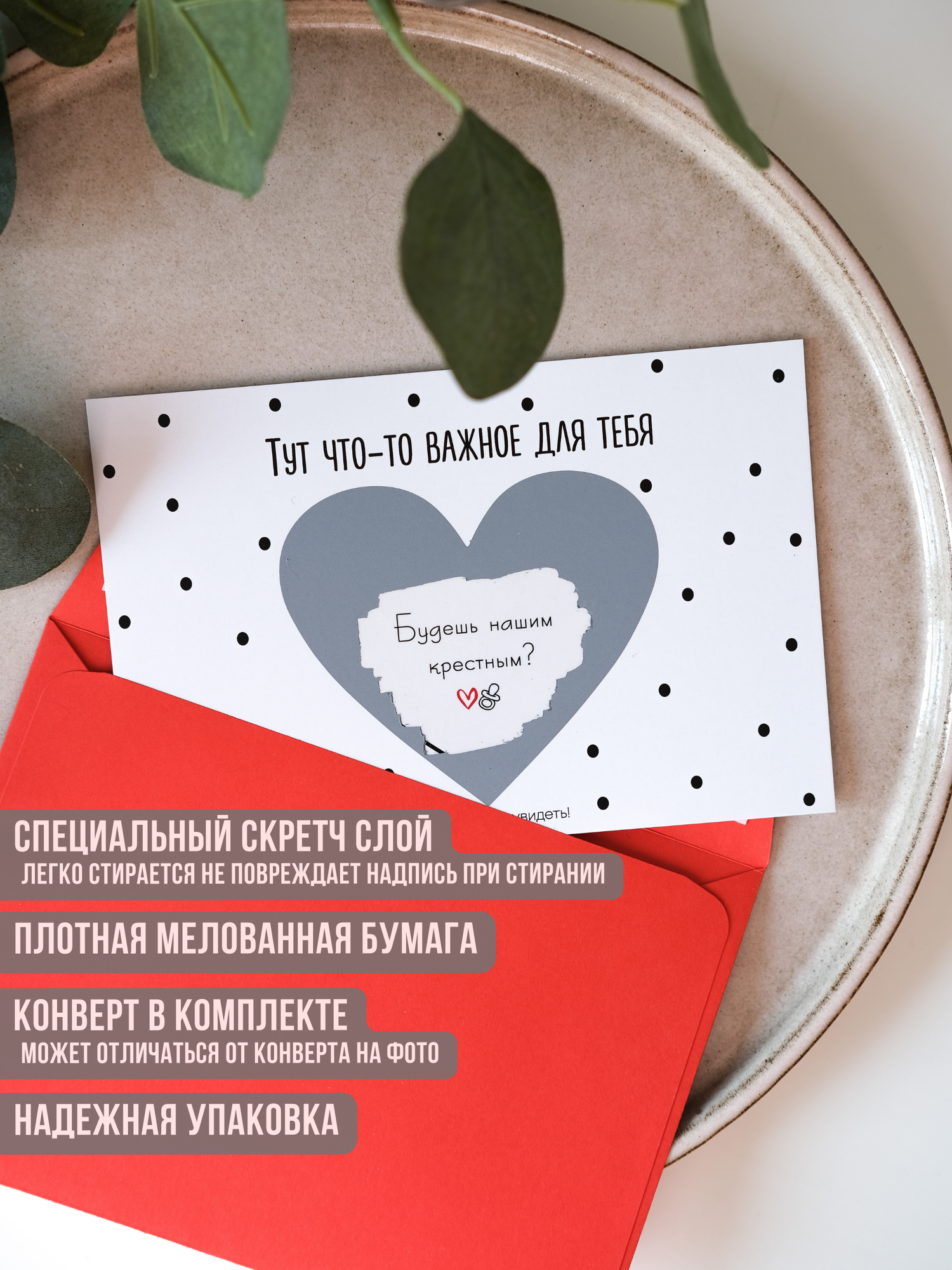 Скретч открытка с конвертом "Ты станешь крёстным" интересное: