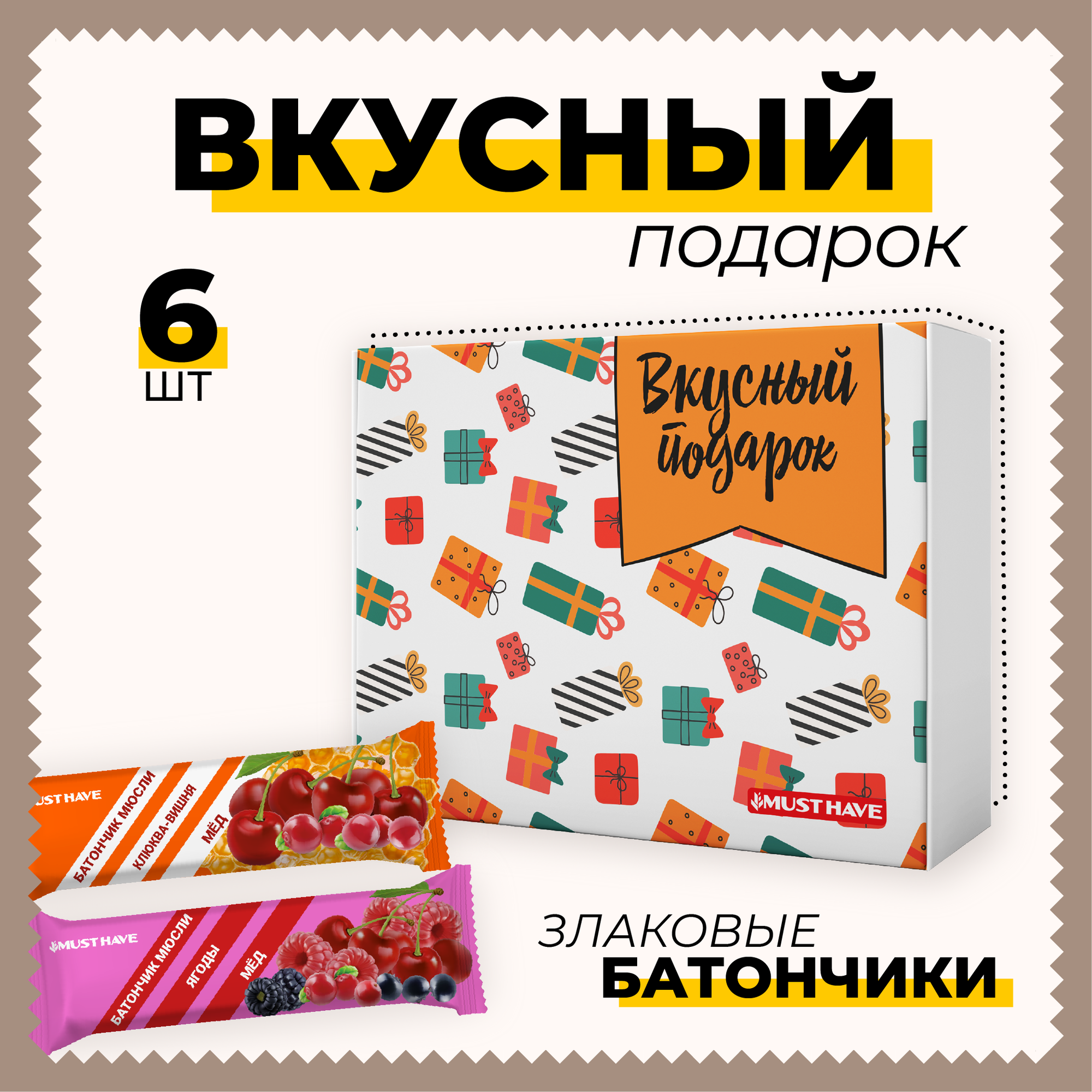 Подарочный набор вкусный подарок MustHave №7 батончики мюсли 6шт интересное: