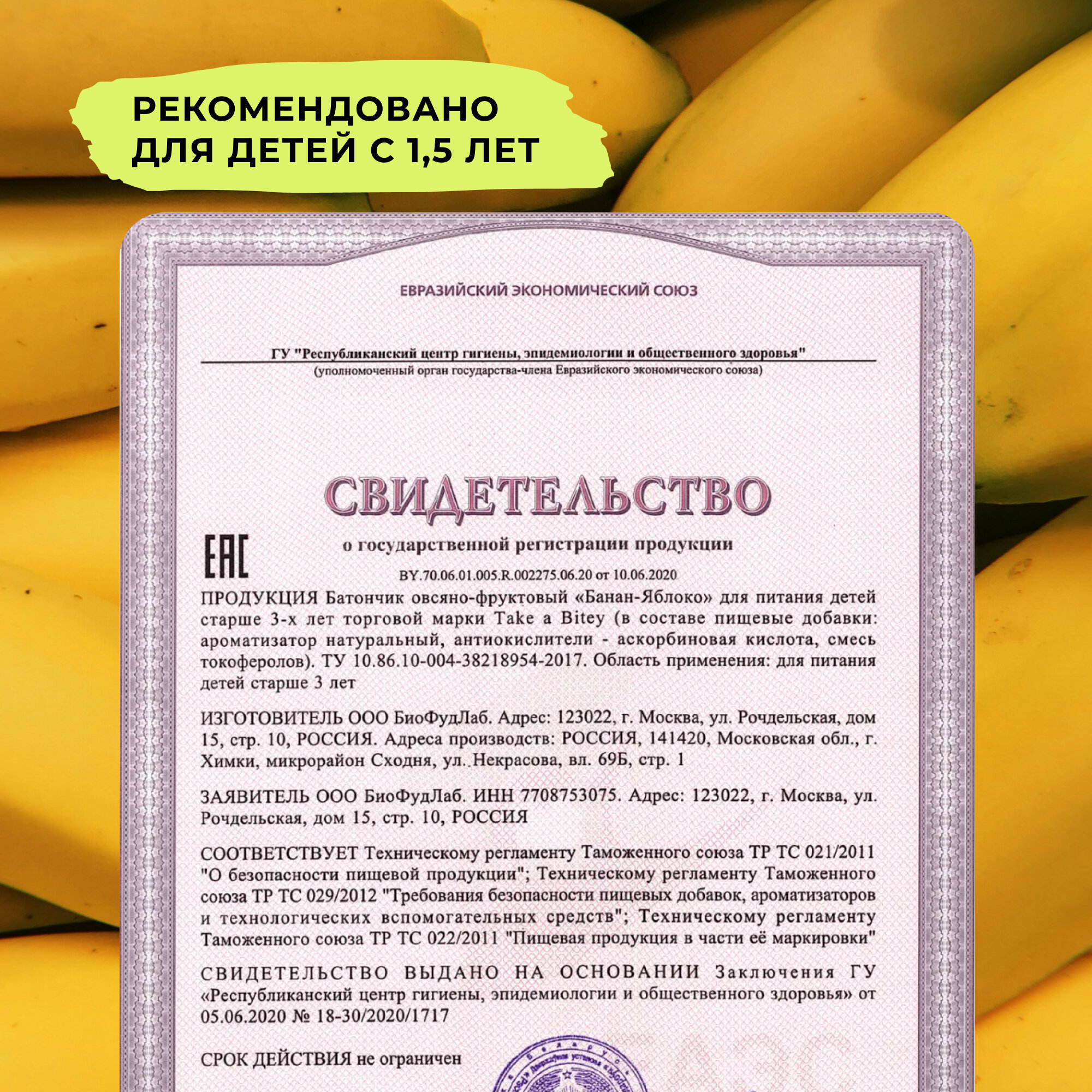 Батончики без сахара фруктово-овсяные Take a Bitey / Bite, Яблоко-Банан, 12 шт по 30 гр интересное: