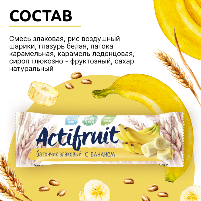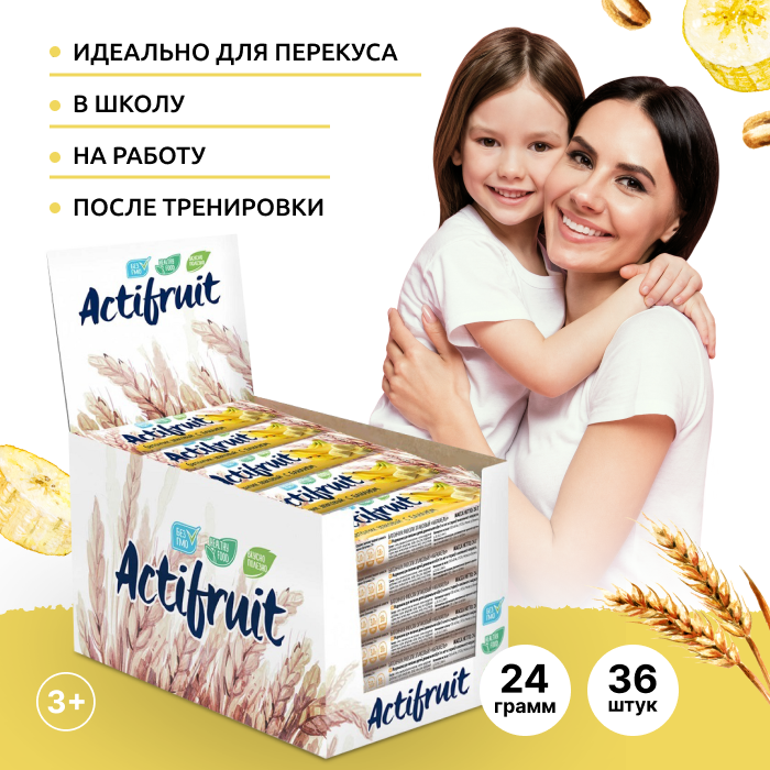 Актифрут Батончики злаковые мюсли Банан, снэки на перекус, суперфуд с собой 36 шт Actifruit аптека асна интересное: