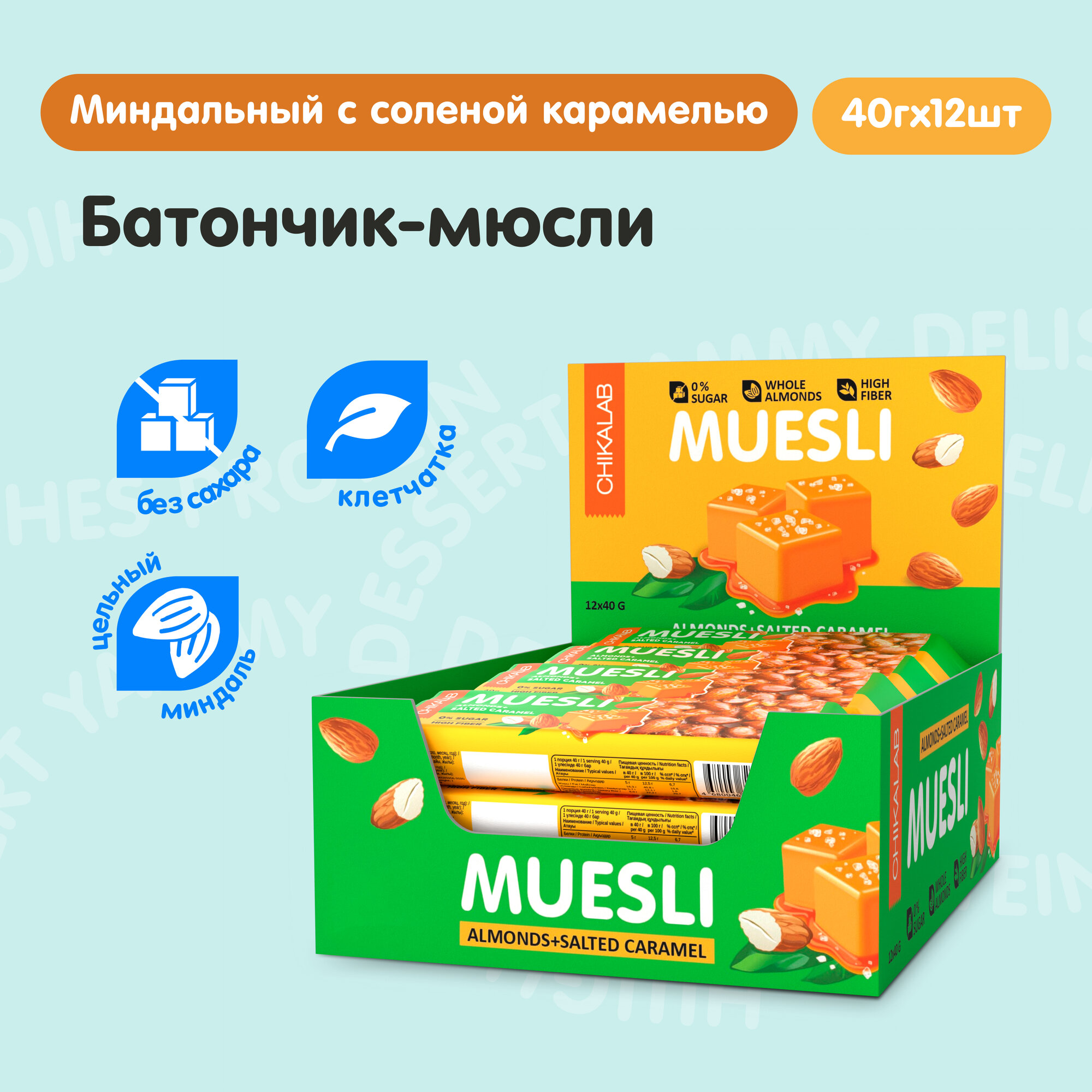 Купить CHIKALAB Батончики мюсли ореховые в шоколаде без сахара "Миндаль и соленая карамель", 12шт х 40г