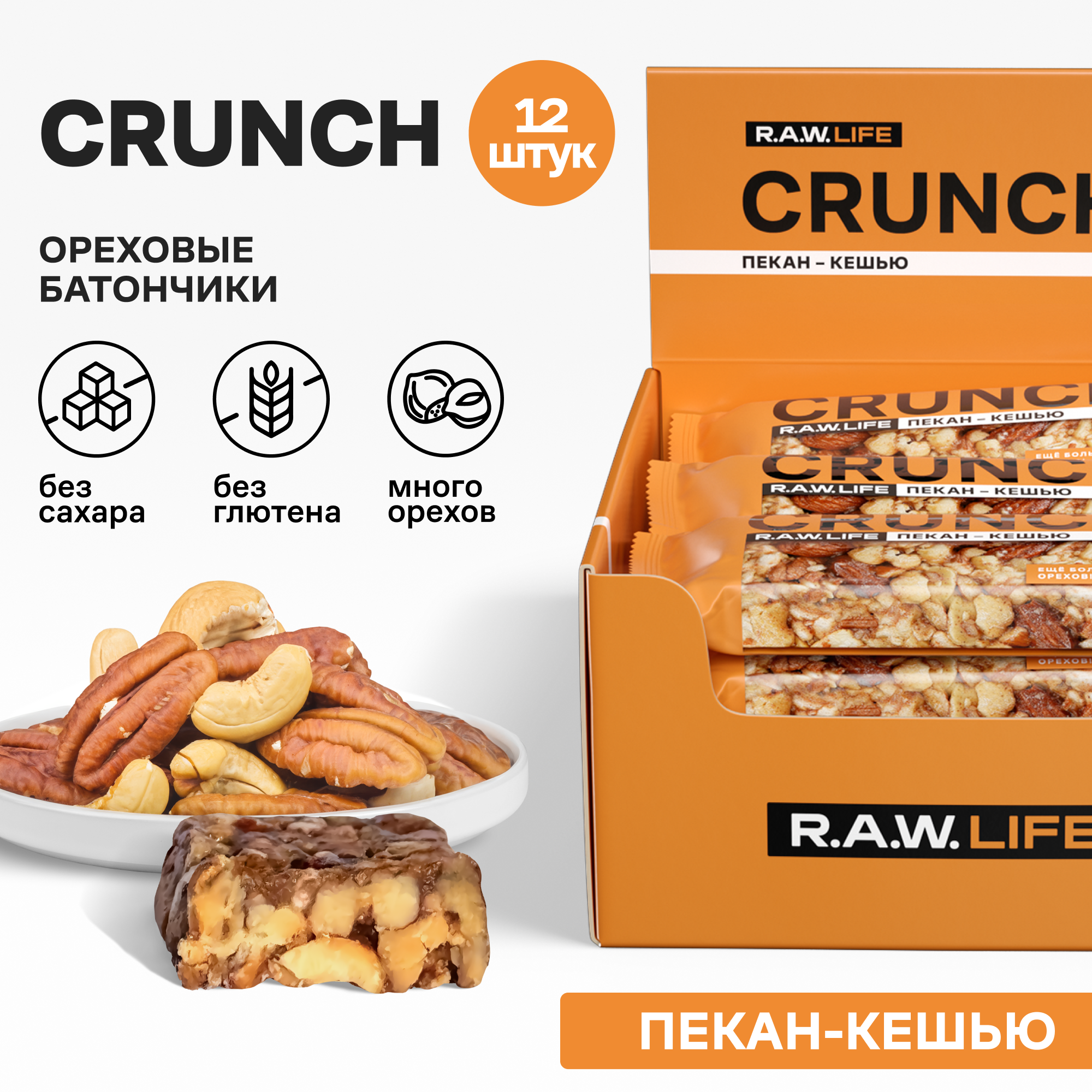 Купить Энергетические батончики без сахара R.A.W.LIFE CRUNCH / Злаковые, натуральные, много орехов / Пекан-Кешью 12 шт по 30 гр
