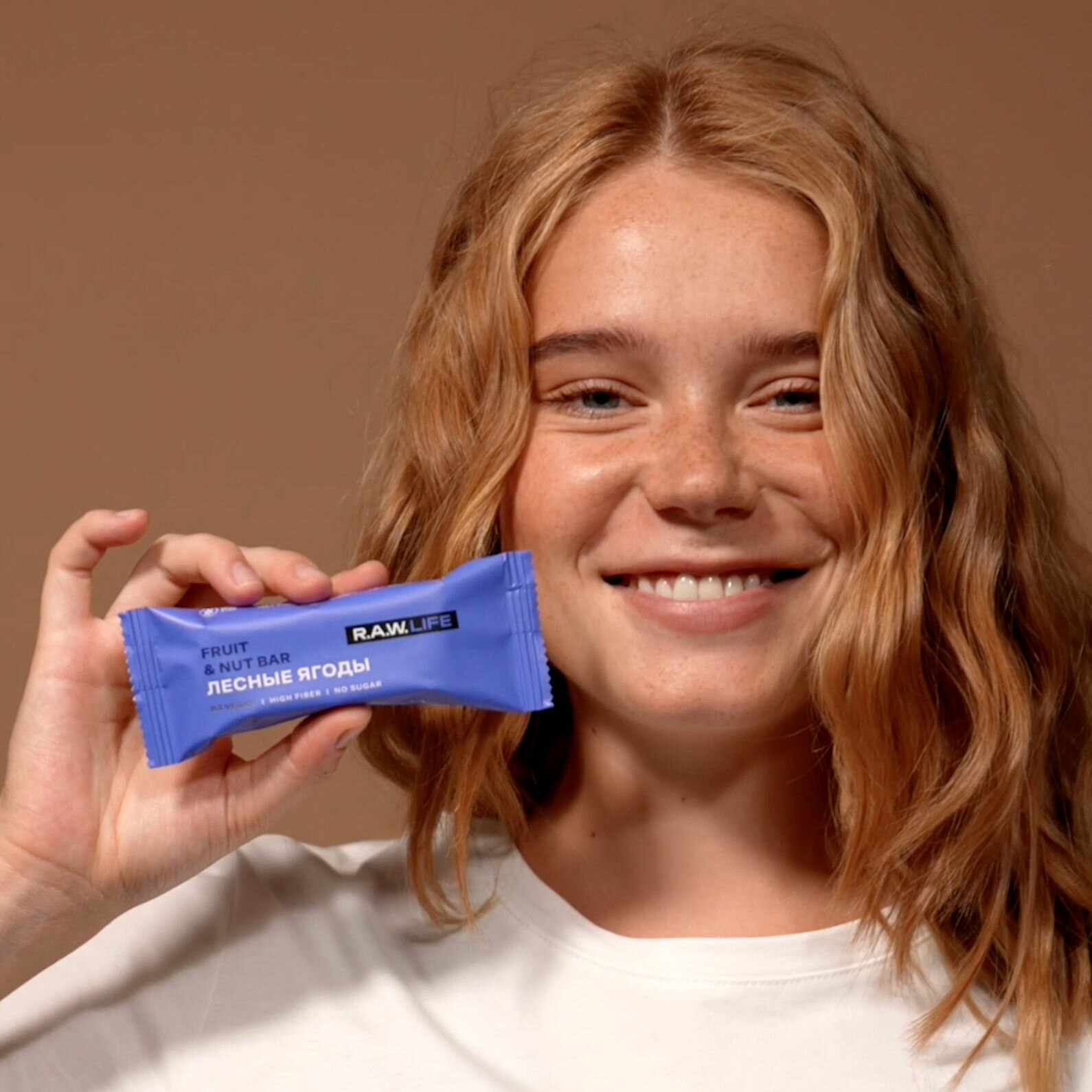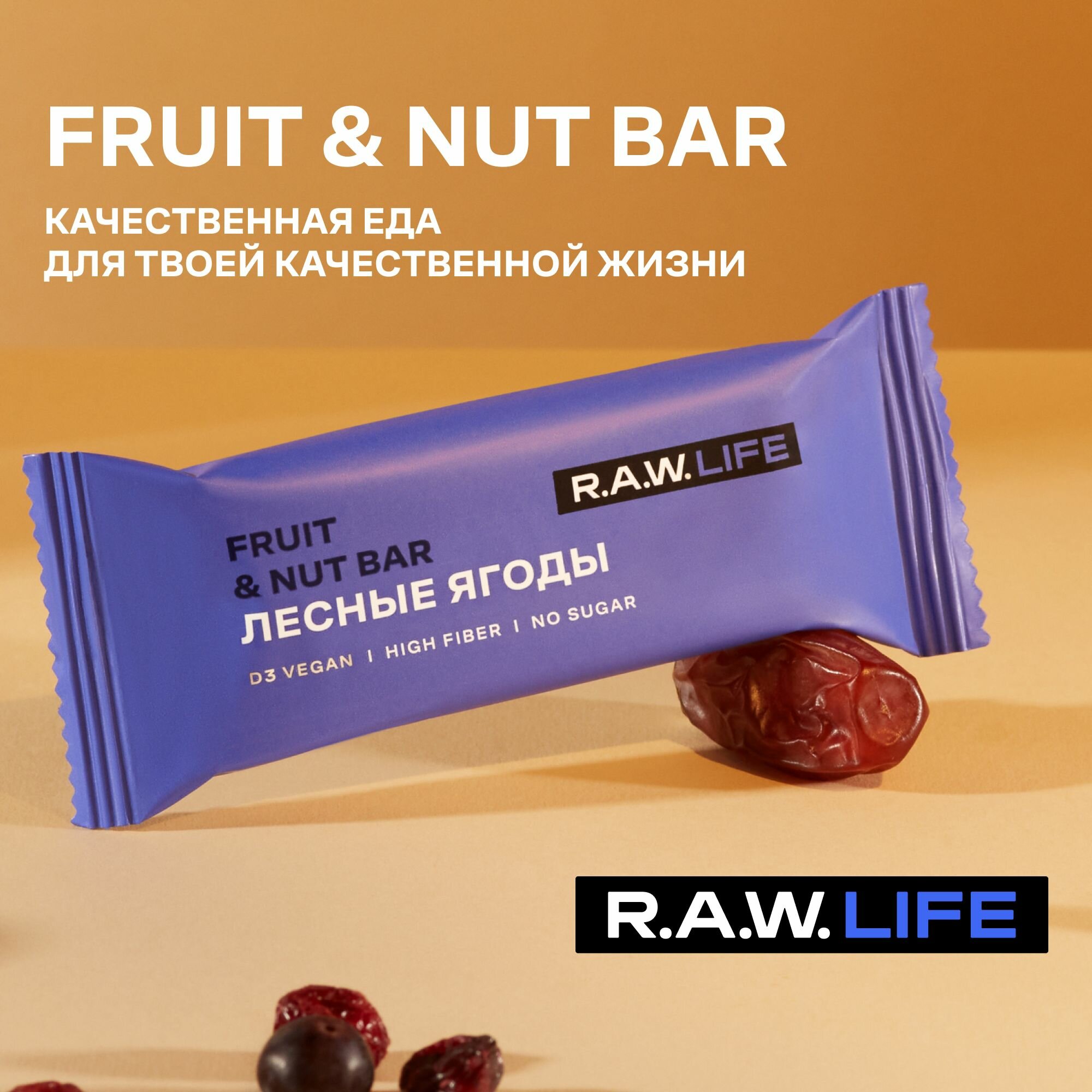Купить Батончики R.A.W.LIFE Fruit&Nut Bar / Фруктово-ореховый бокс полезных пп сладостей без сахара, лактозы и глютена / Лесные ягоды 15 шт по 47 гр